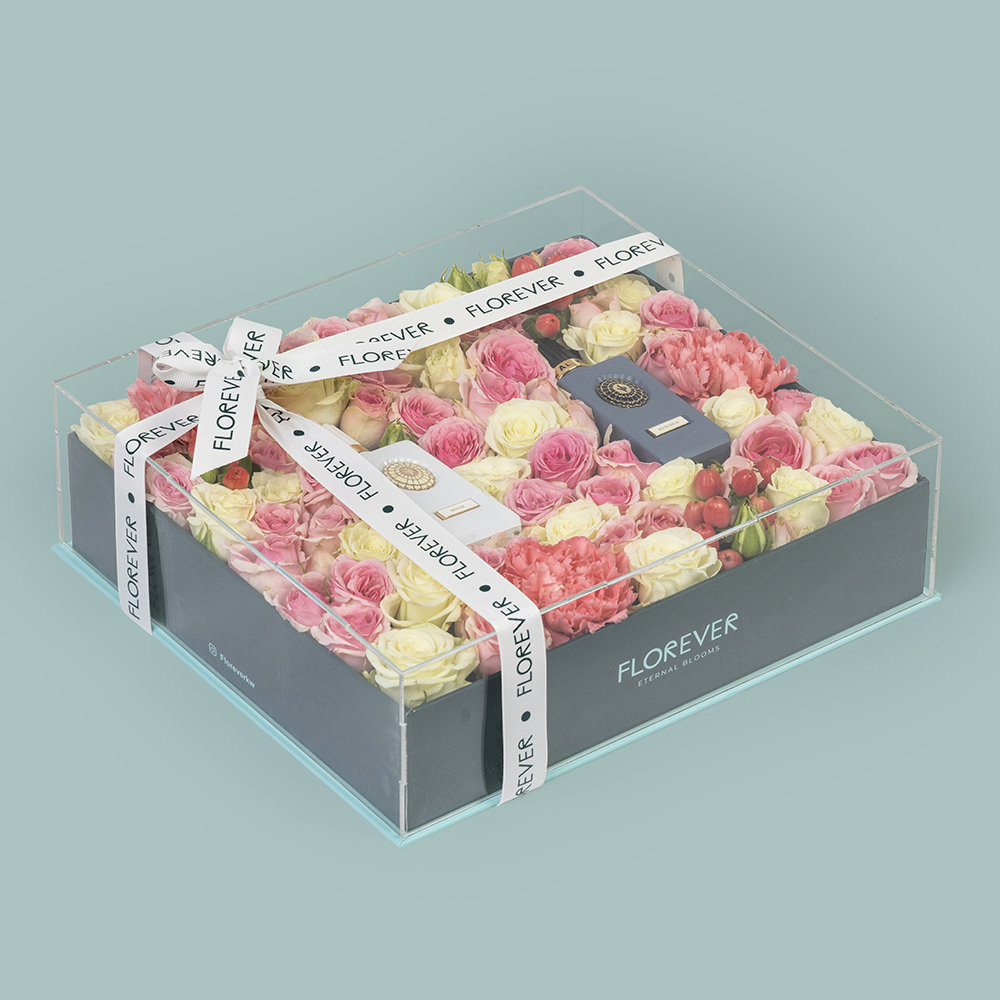 تتميز هذه المجموعة الرائعة بكيكة صغيرة مقترنة بباقة نابضة بالحياة من الأزهار الوردية، والتي تتكون من زهور الجيربيرا البيبي جوري، الجوري والكارنيشن. إنها مثالية للإحتفالات أو الهدايا المدروسة. أضف البهجة إلى يوم شخص ما مع هذه المجموعة الساحرة. يمكن تخصيص ما يصل إلى 5 كلمات باللغة الإنجليزية على الكيكة.
