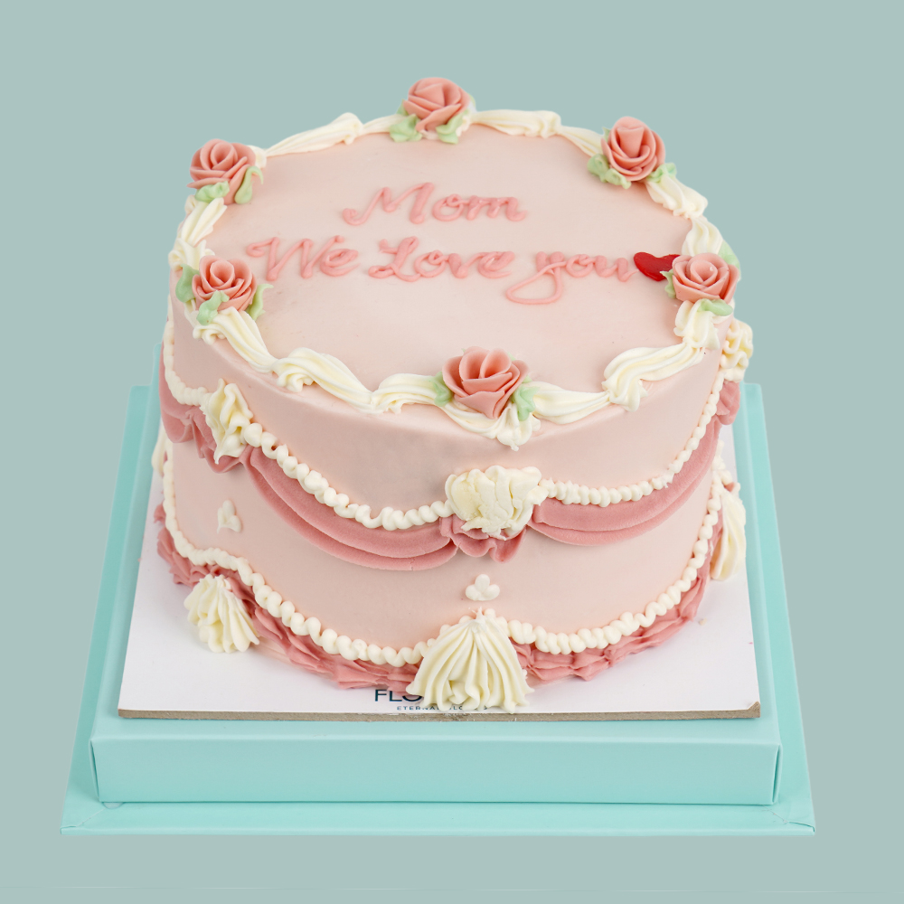 باقة تحتوي على الجوري، والكرنيشن، والجربيرا مع كيكة وكتابة قابل للتغيير.