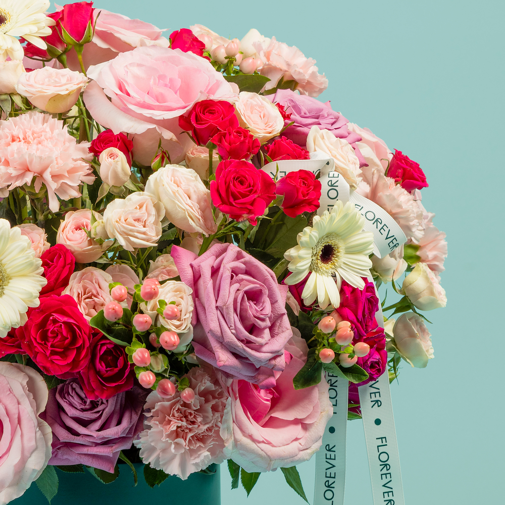 تنسيق أنثوي ناعم بتدرجات وردية جذابة، مصمم بشكل دائري ممتلئ يعكس الرقة والفرح. يتميز هذا الصندوق بتناسق زهور الجوري، البيبي جوري، الجيربيرا، الكارنيشن والهايبريكم فيه ليمنح إحساسًاً دافئاً وأنيقاً، ويقدم داخل صندوق فلوريفر الدائري ليكون خياراً مثالياً للهدايا، أعياد الميلاد، والمناسبات الخاصة.