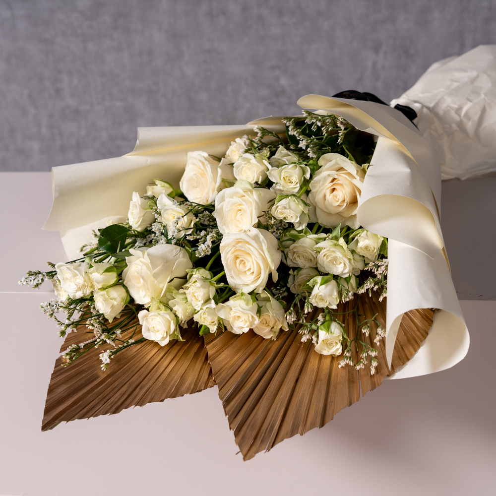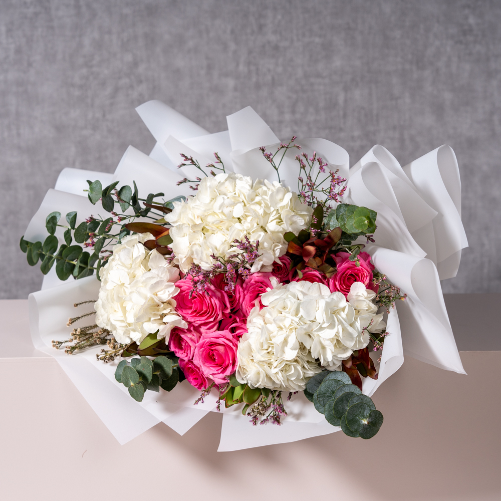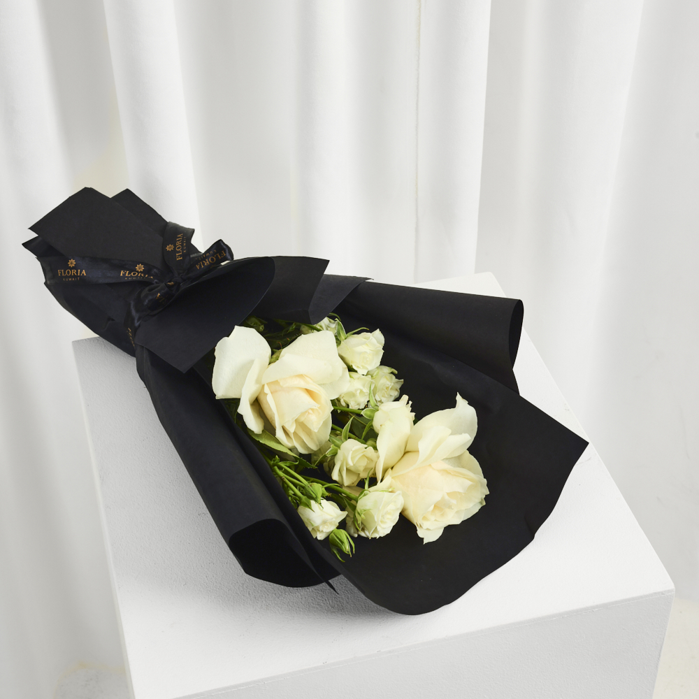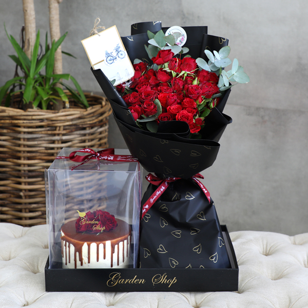 هذا الستاند يحتوي على زهور الإستوما مع كيكة.
