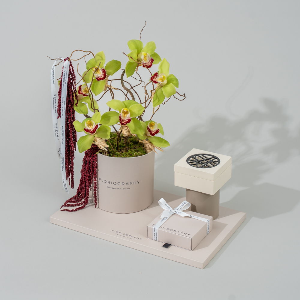 باقة شروق الشمس تحتوي على زهور الأنثوريوم.