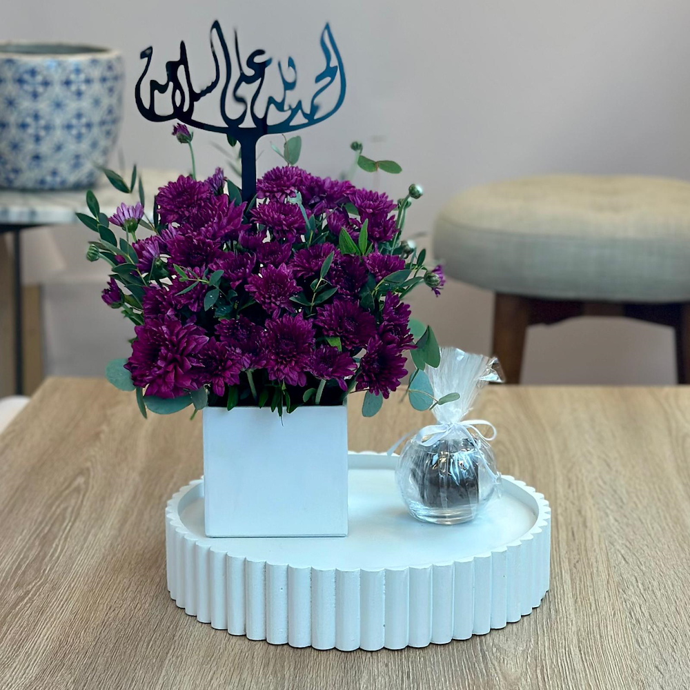 باقة مليئة بأزهار الكريز مع الشوكولاتة.
