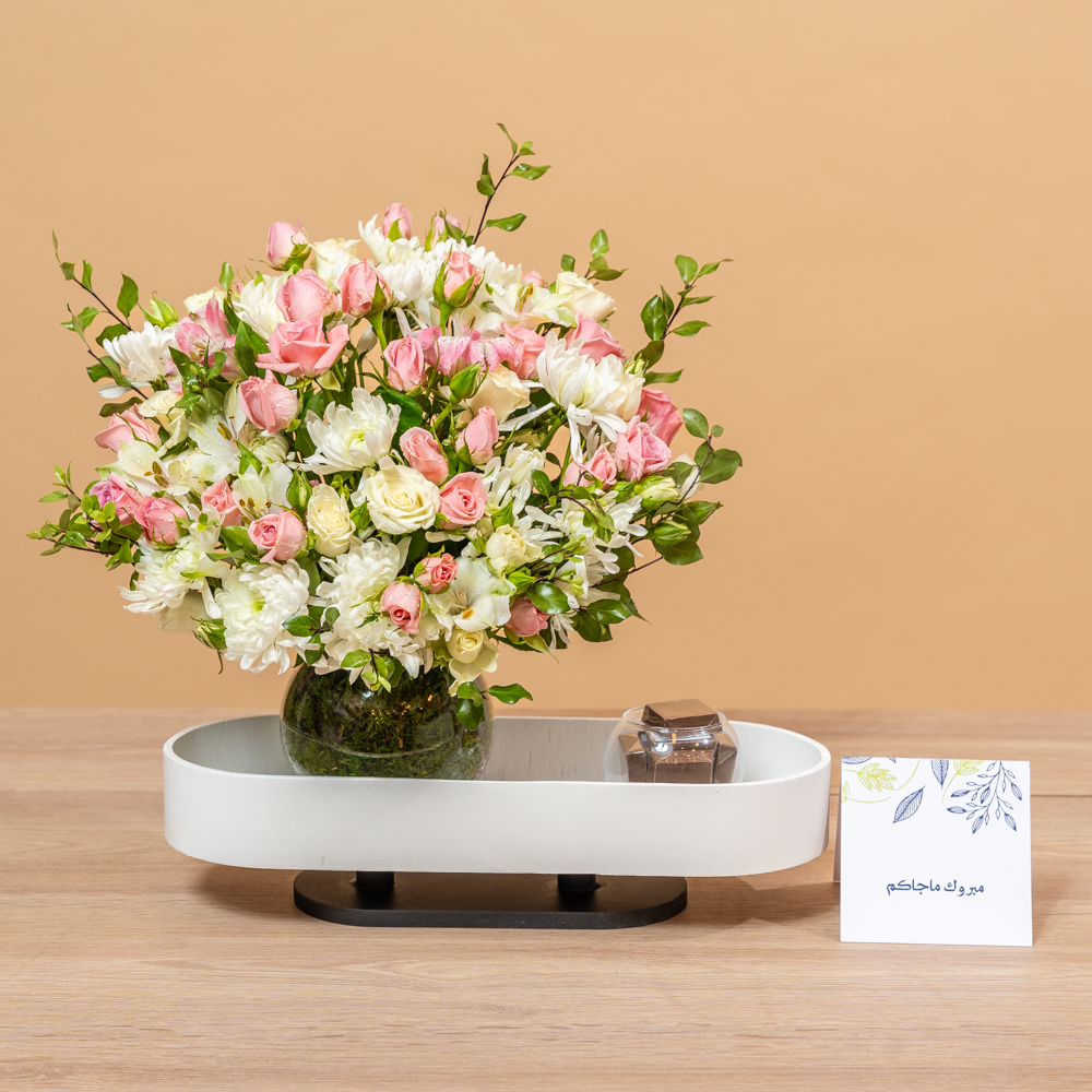 تحتوي هذه الباقة على زهور الجوري، مصحوبة بشوكولاتة لذيذة. هدية مثالية لإسعاد شخص مميز.
