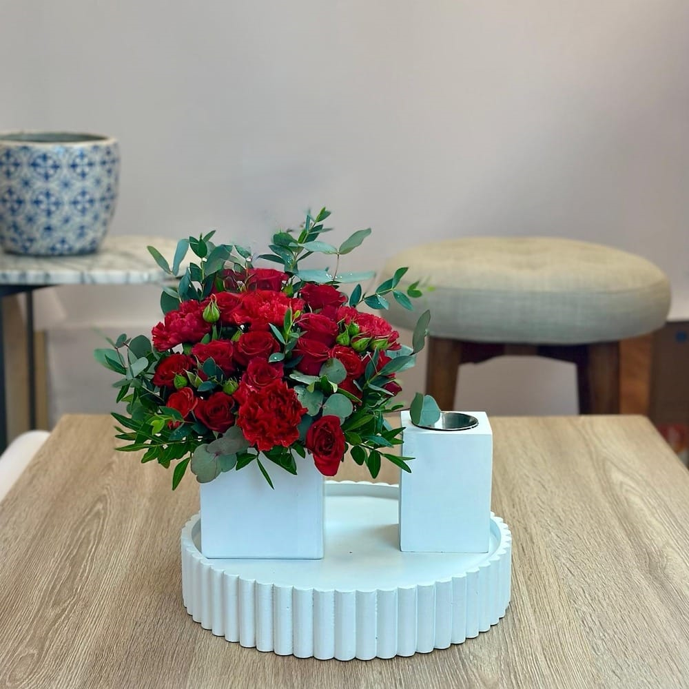 باقة مرتبة بزهور البيبي جوري والكارنيشن مع مبخر.