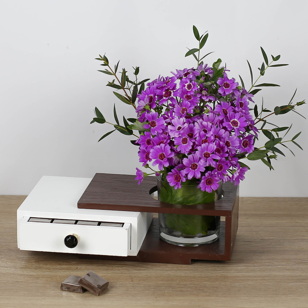 باقة تحتوي على زهور الكريز الجميلة مع الشوكولاتة.