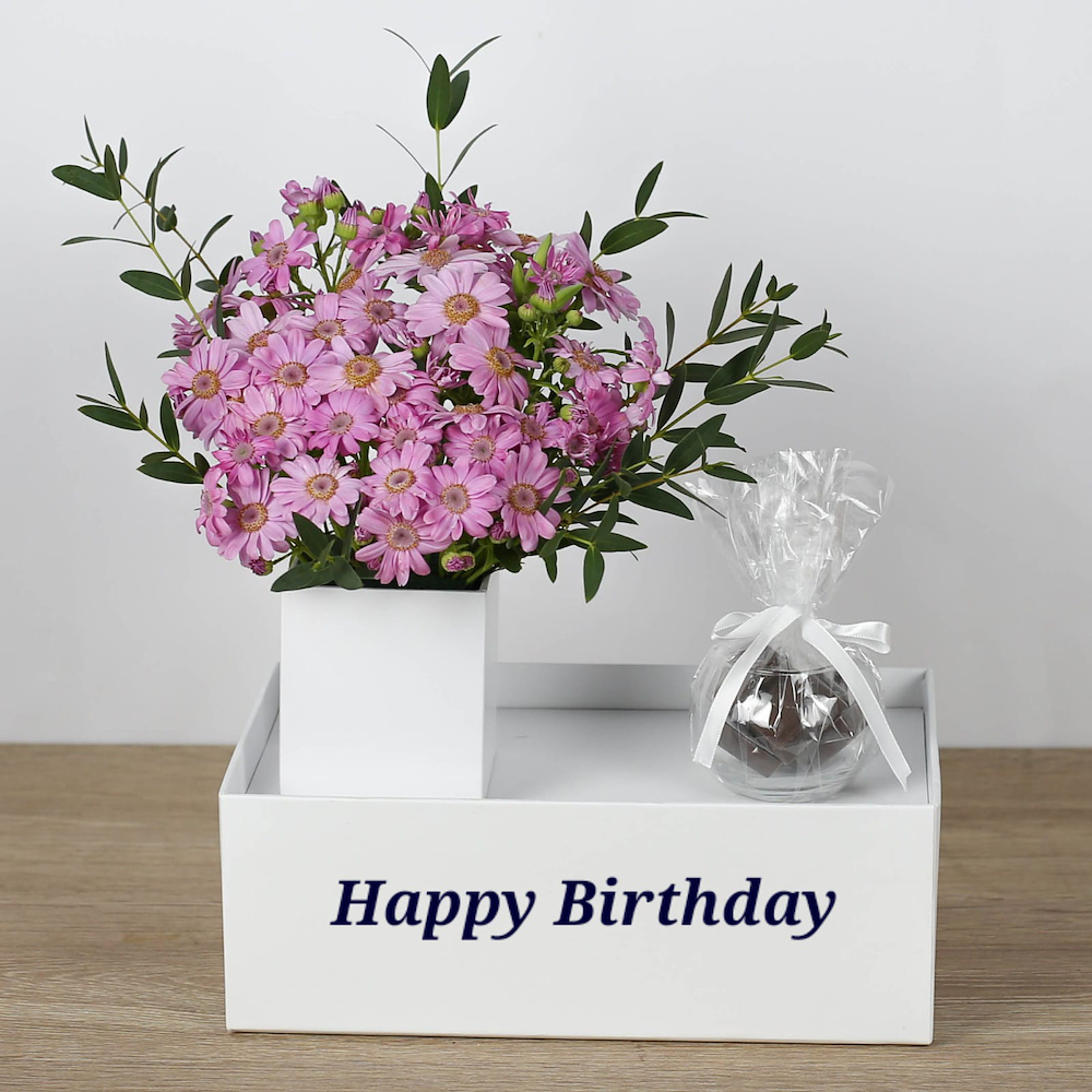 باقة مليئة بمزيج من الأزهار الجميلة مع الشوكولاتة.