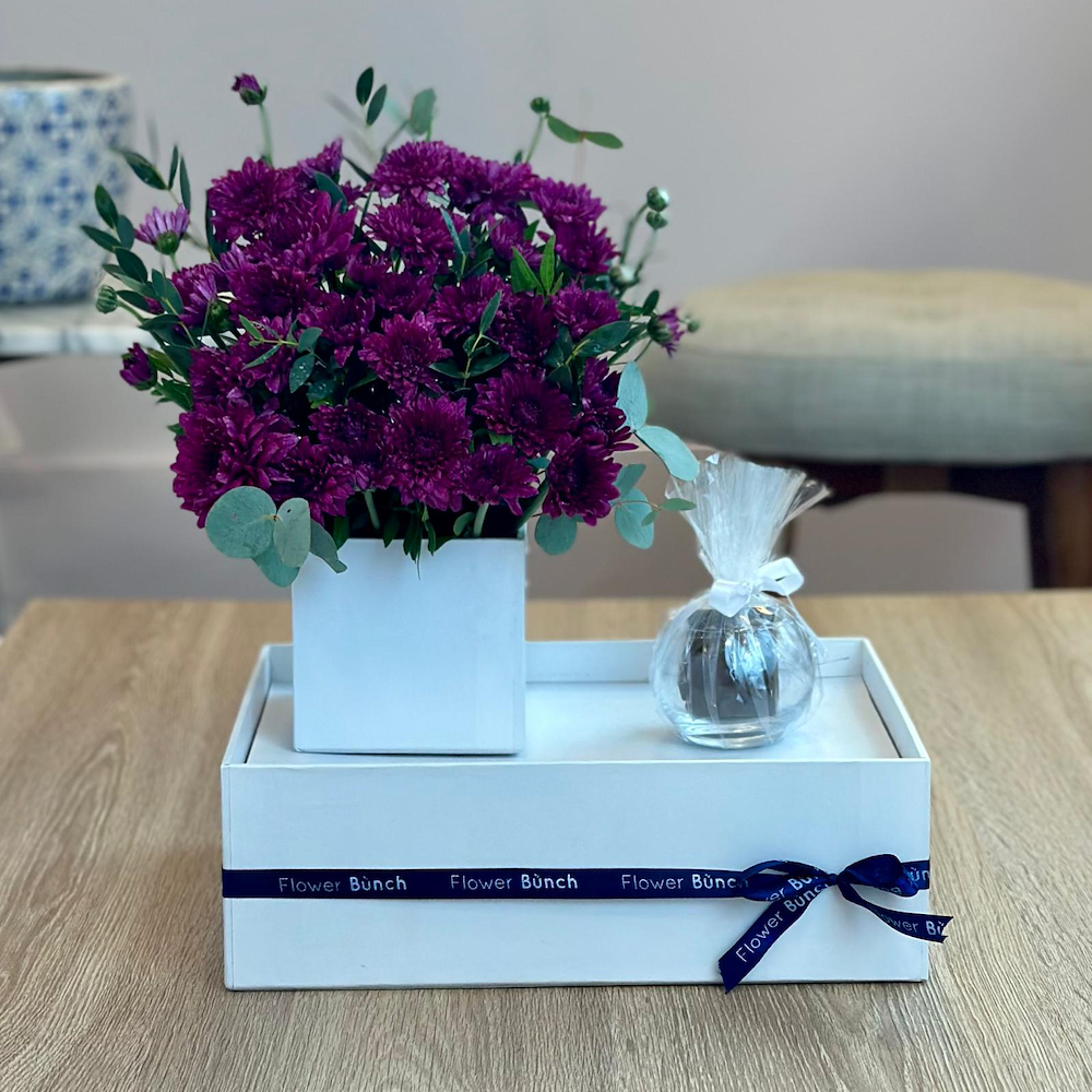 باقة مرتبة بزهور الكريز والشوكولاتة.