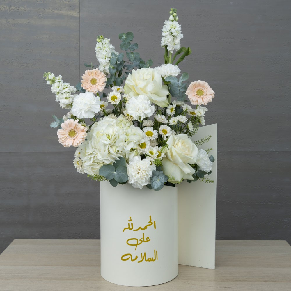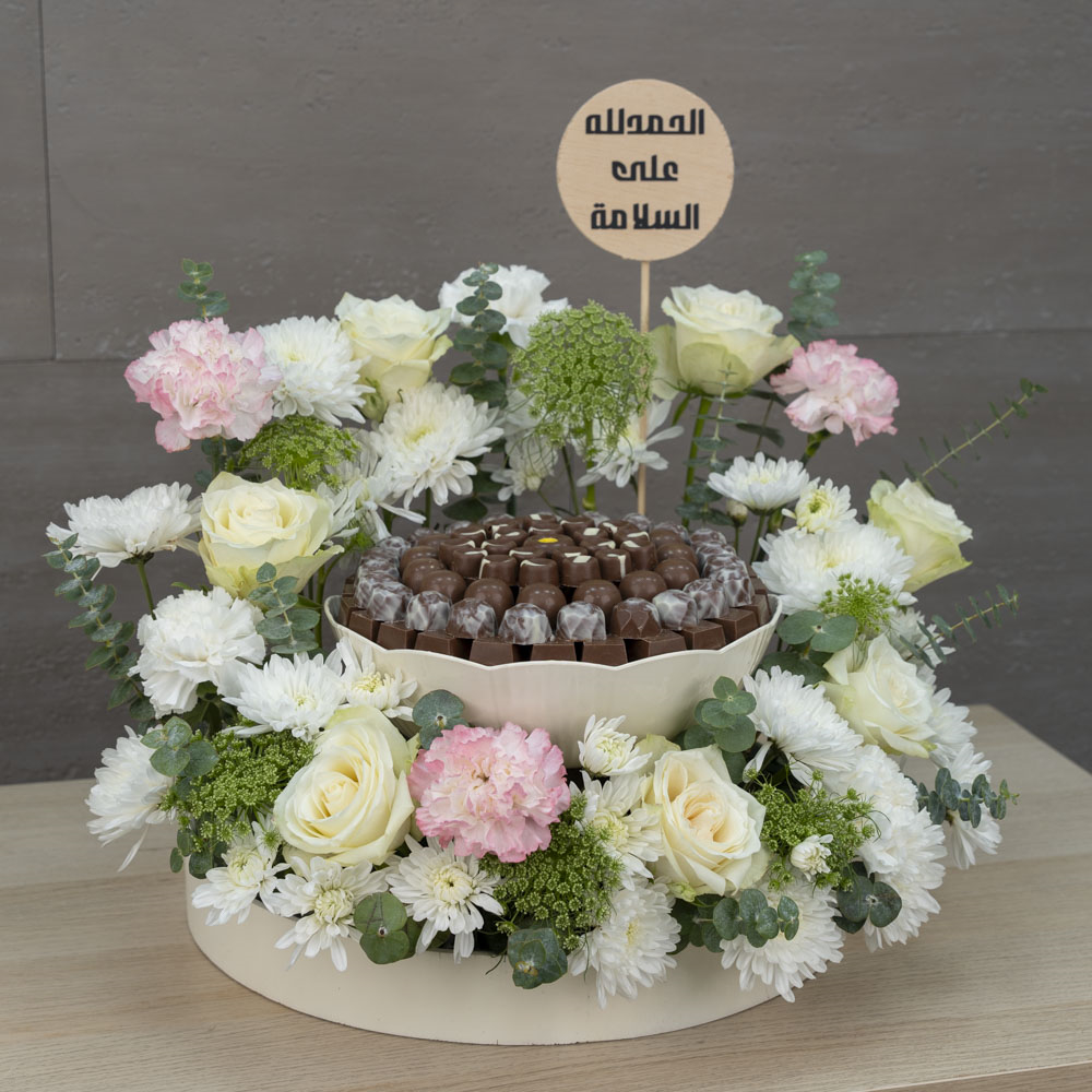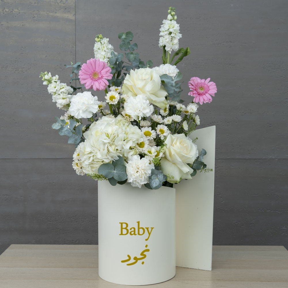 هذه الباقة تحتوي على الجوري والبيبي روز.