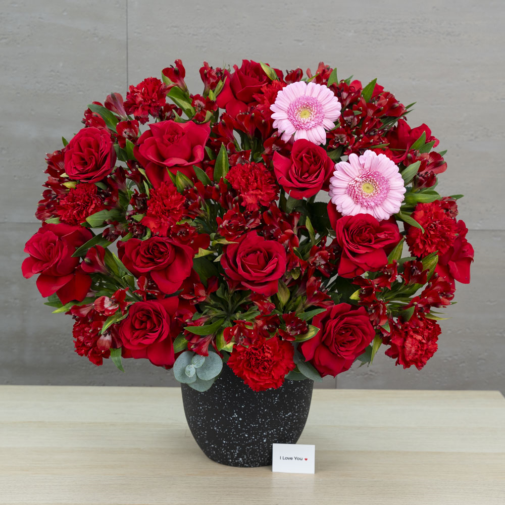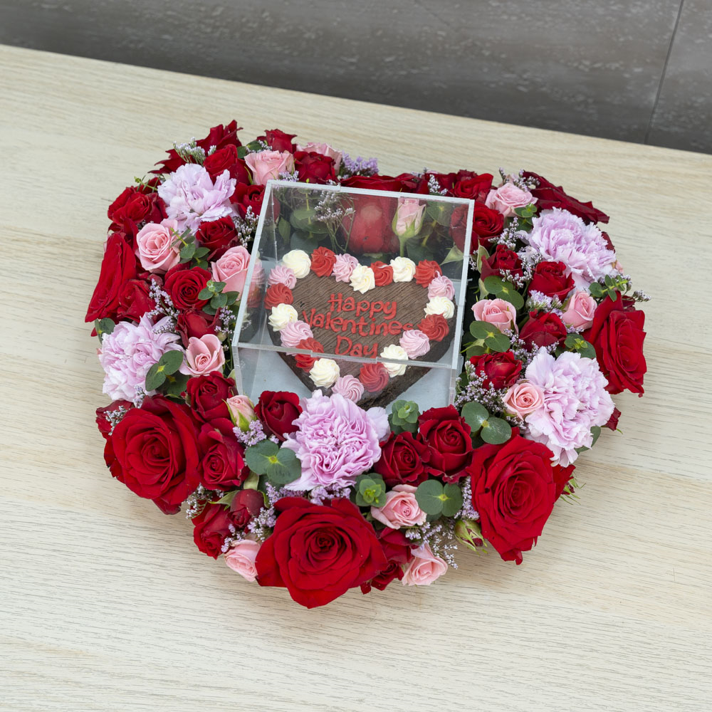 باقة أنيقة بتصميم قلب تضم أزهار الجوري وجيربيرا.