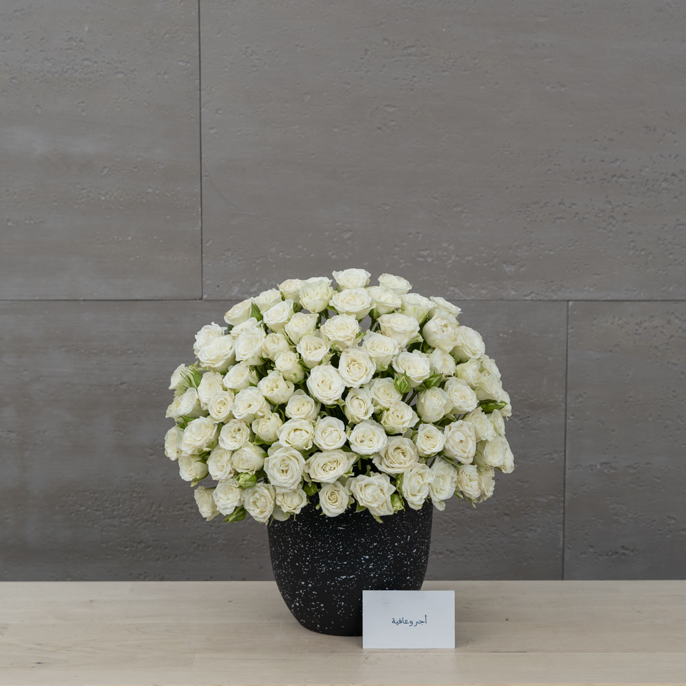 هذه الباقة تحتوي على زهور البيبي جوري البيضاء.