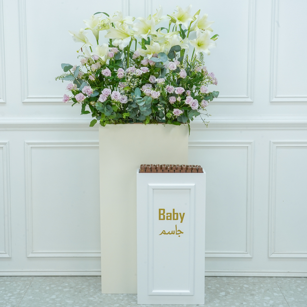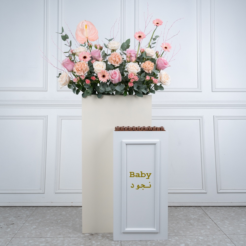 هذه الباقة تحتوي على الجوري، الجيربيرا والكارنيشن مع الشكولاتة.