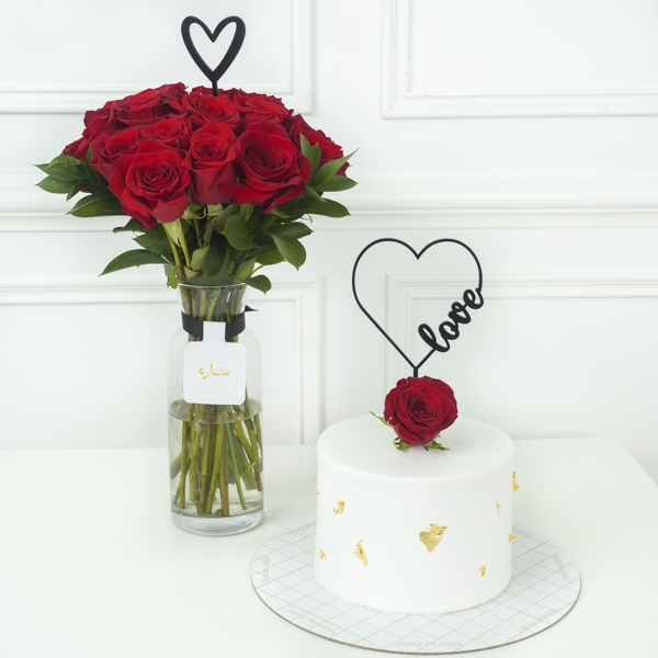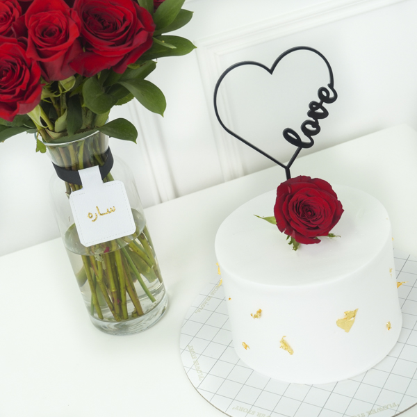 هذه الفازة تحتوي على الجوري مع كيكة الشوكولاتة.