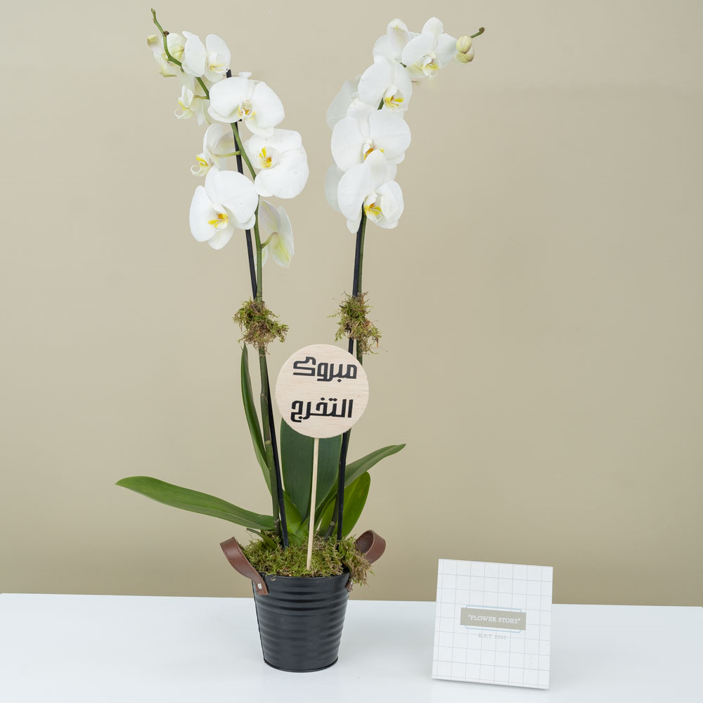 هذه الباقة تحتوي على نبتة الأوركيد مع علبة شوكولاتة.