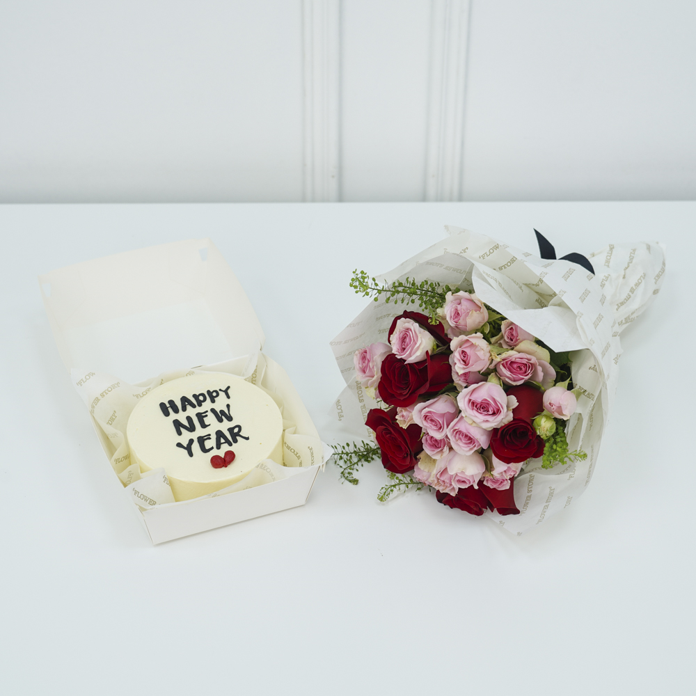 هذه الباقة تحتوي على الجوري والبيبي جوري مع كيكة الشوكولاتة.
