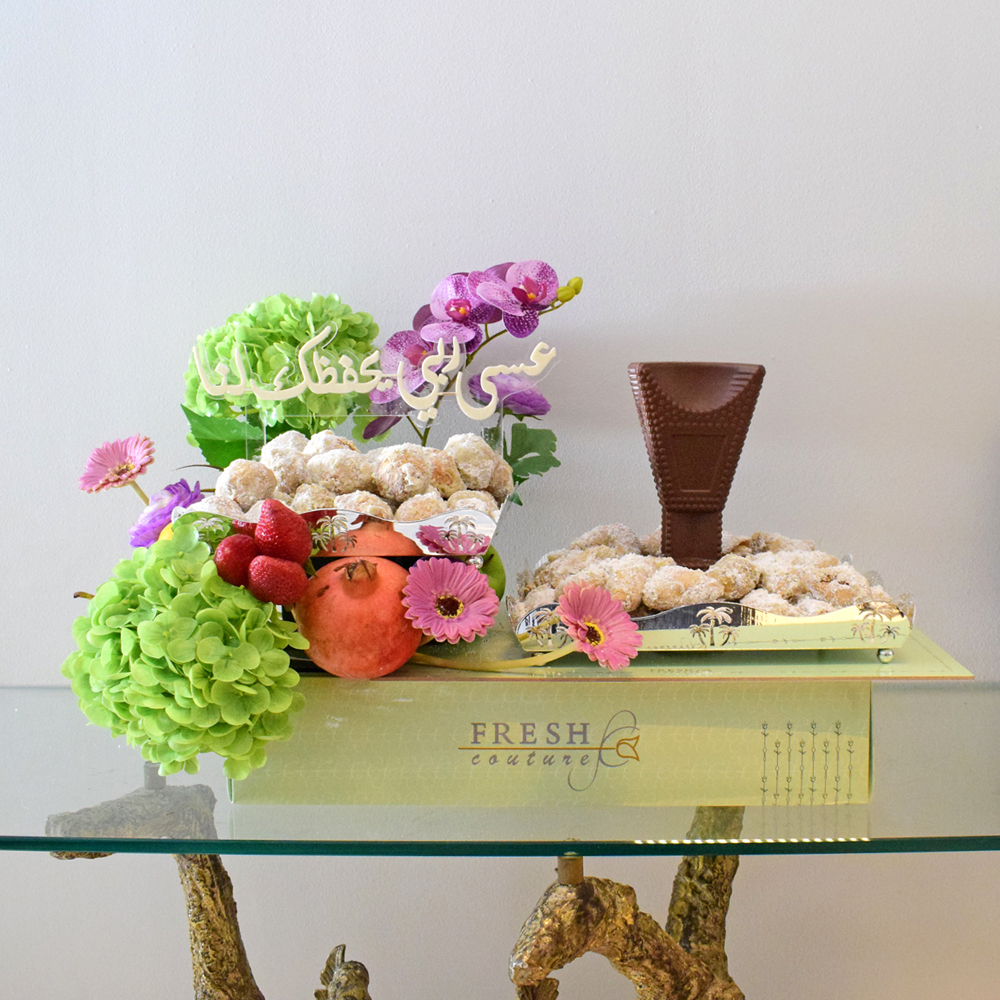 تحتوي هذه الباقة على زهور الجوري مع الشوكولاتة.