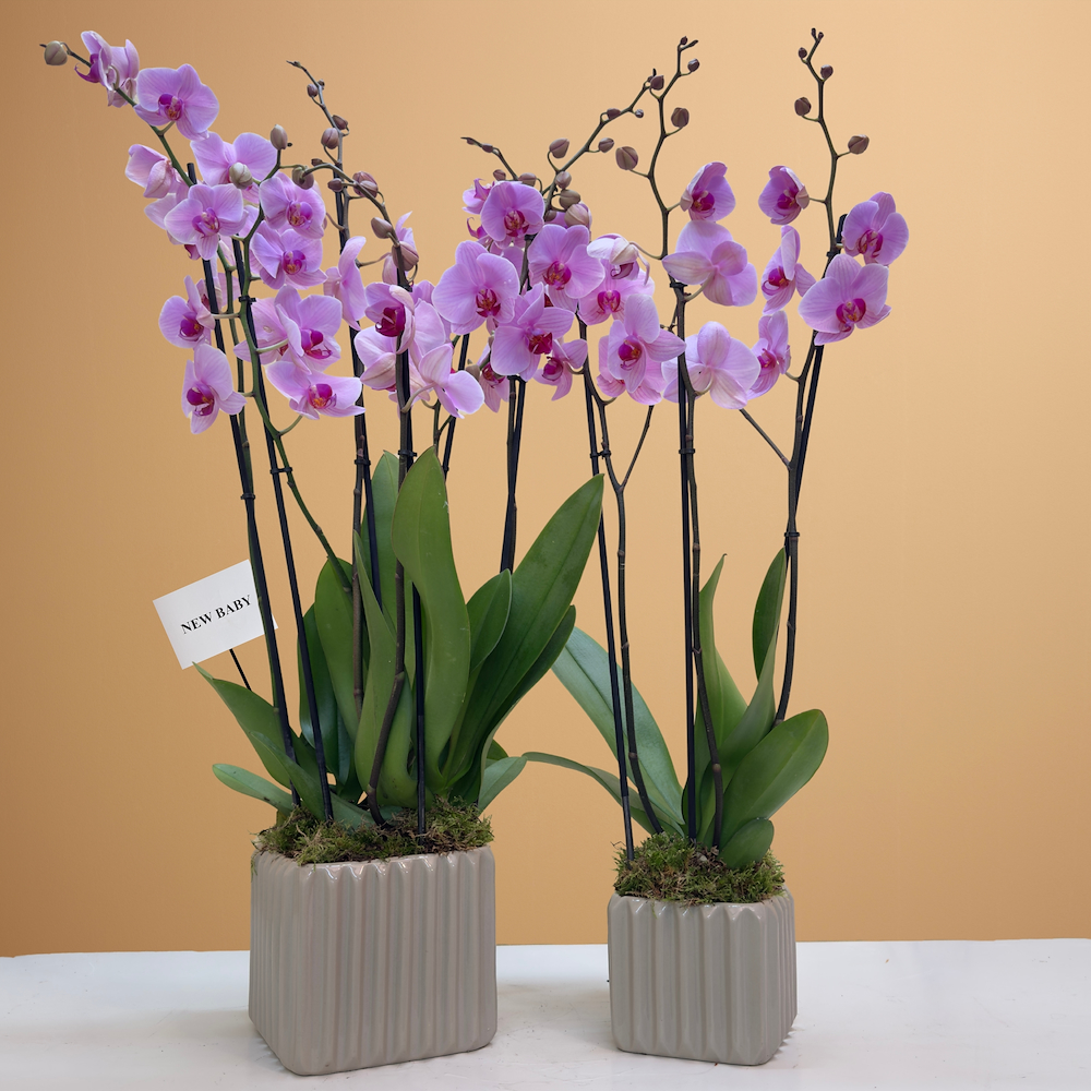 قلادة تحتوي على سيمبيديوم وزهرة الشمع والخشب مع اسم نقش في الصدف.