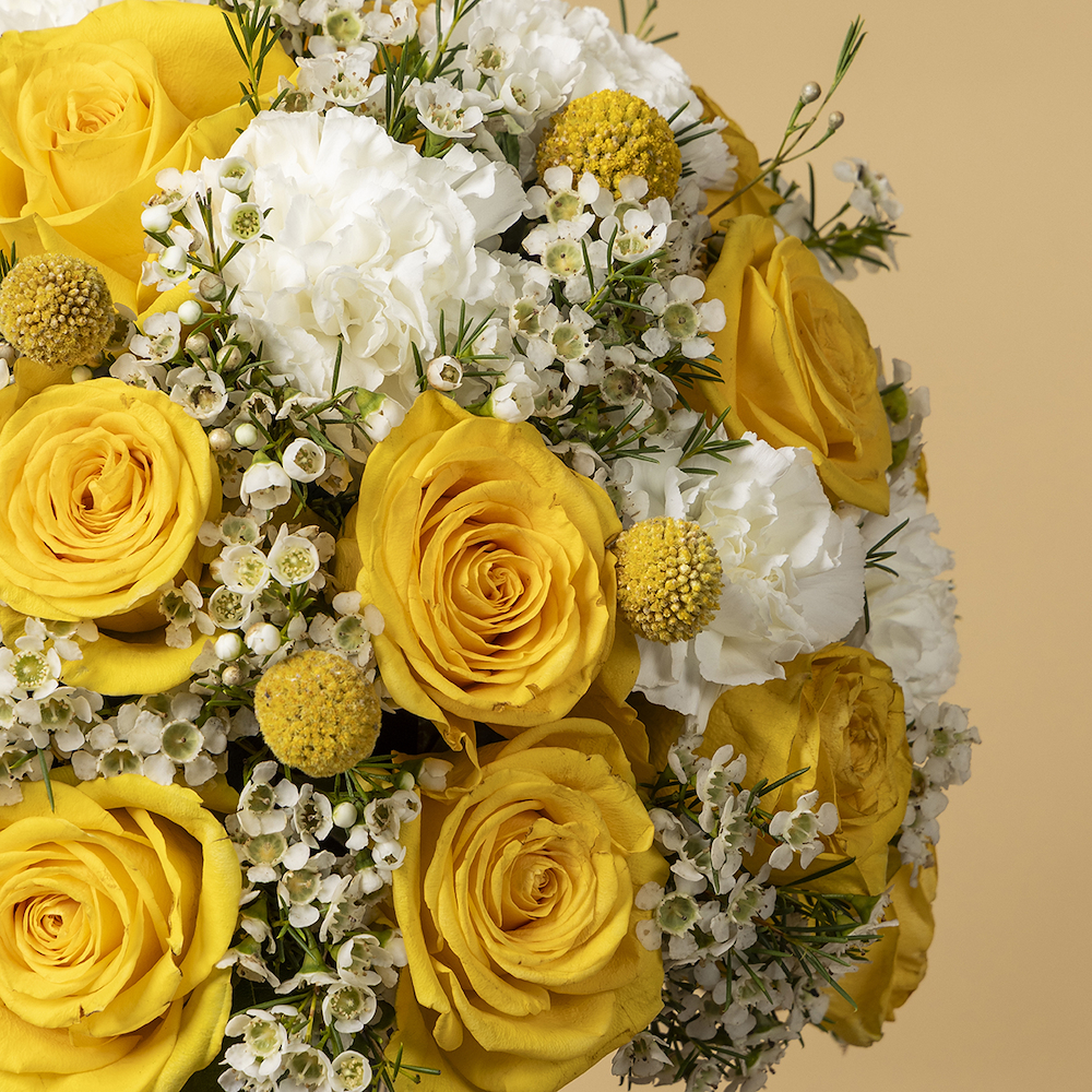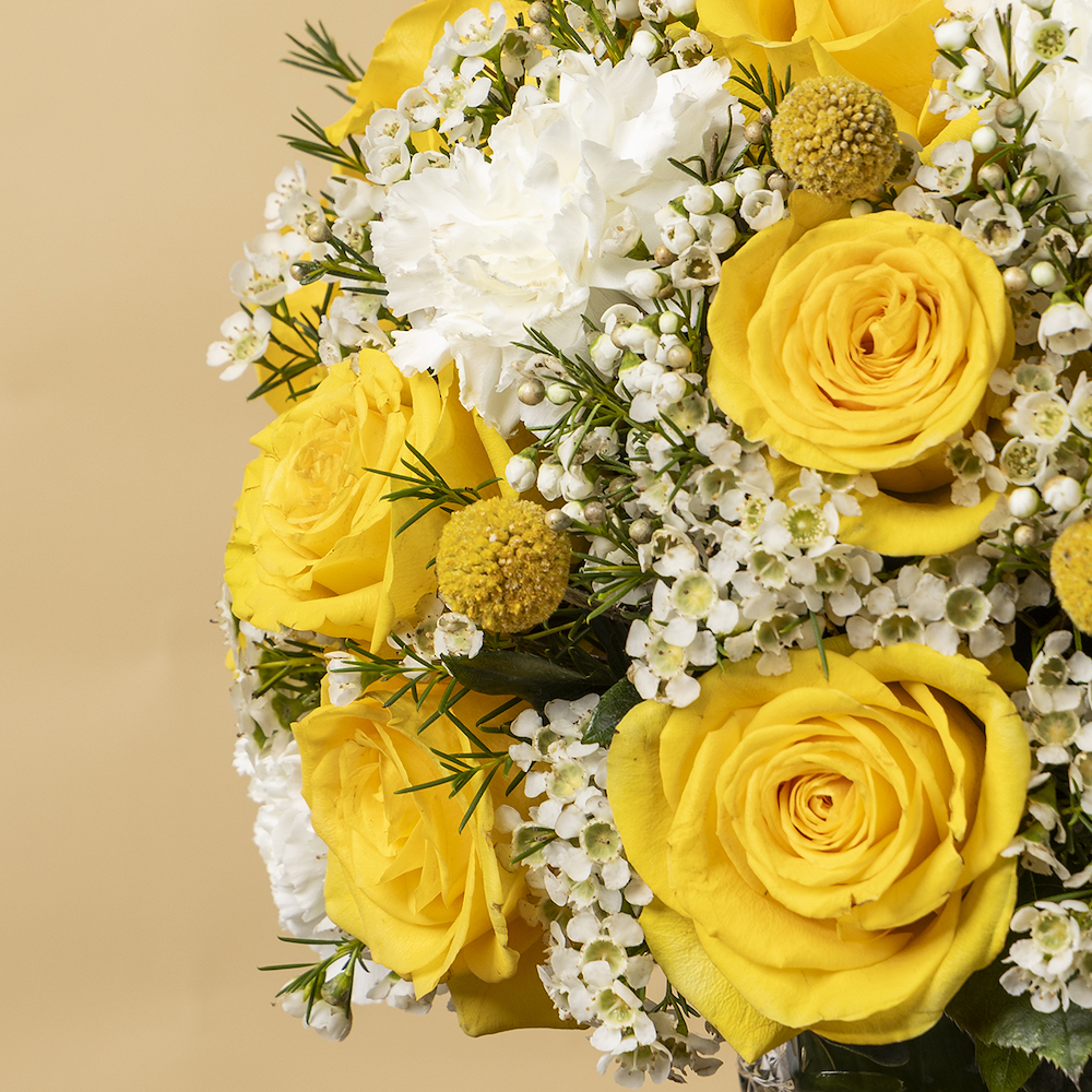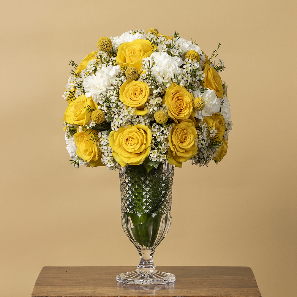 فازة مليئة بالجوري، الكارنيشن زهور الواكس.