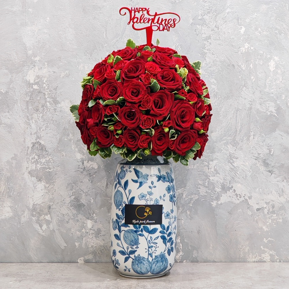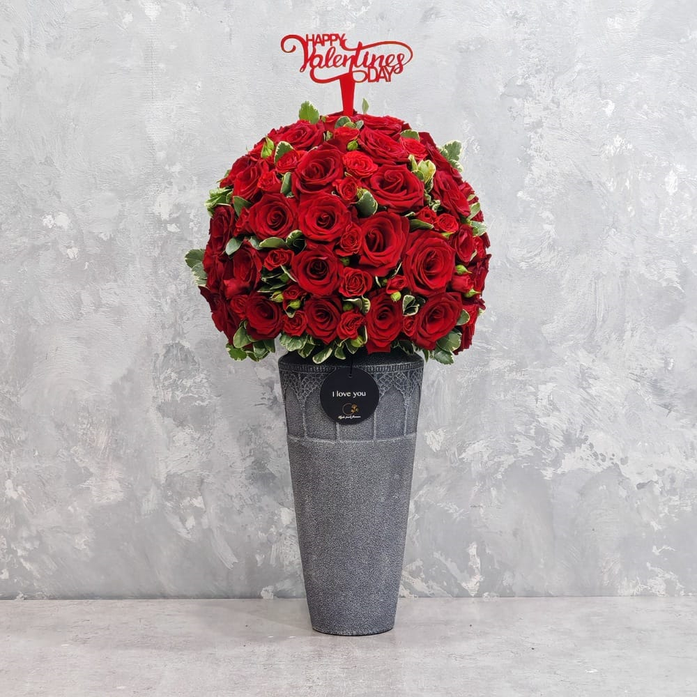 هذه الفازة تحتوي علي زهور القلاديوليوس، البروتيا والسفاري.