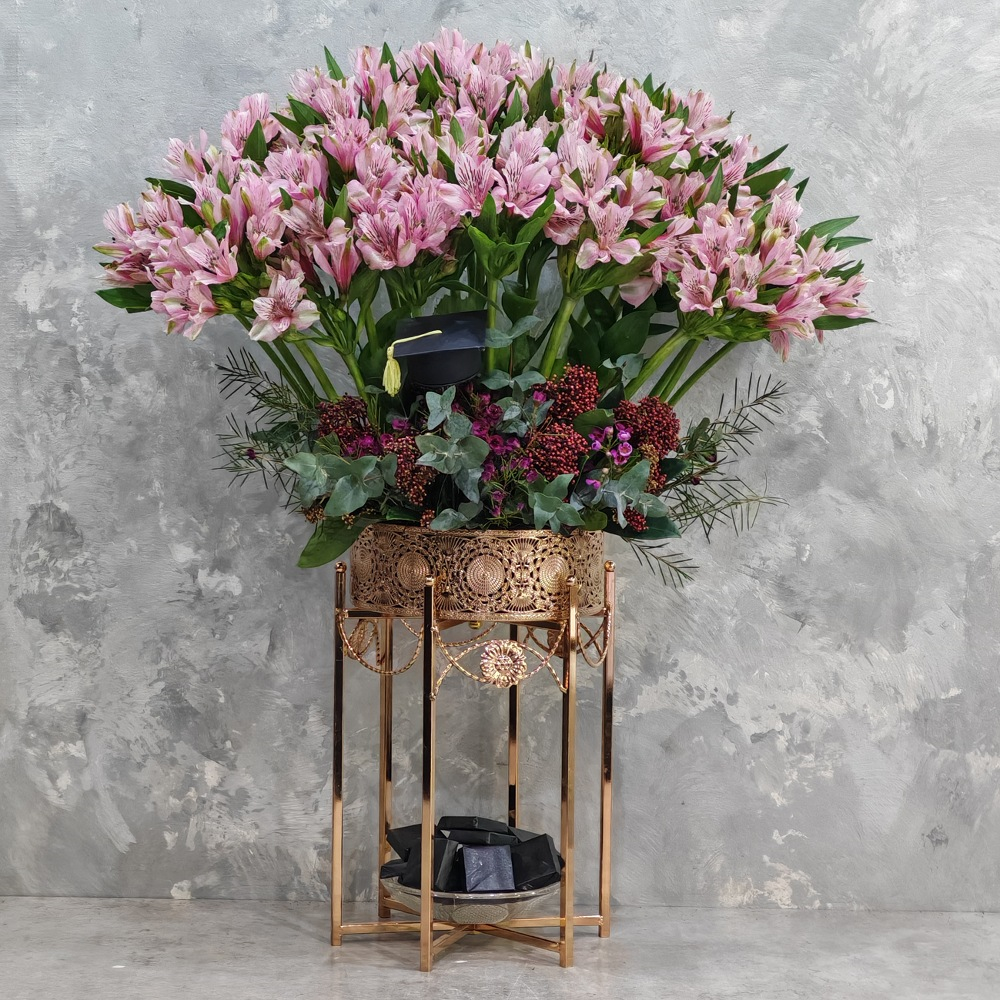 فازة مليئه بزهور بيبي جوري.