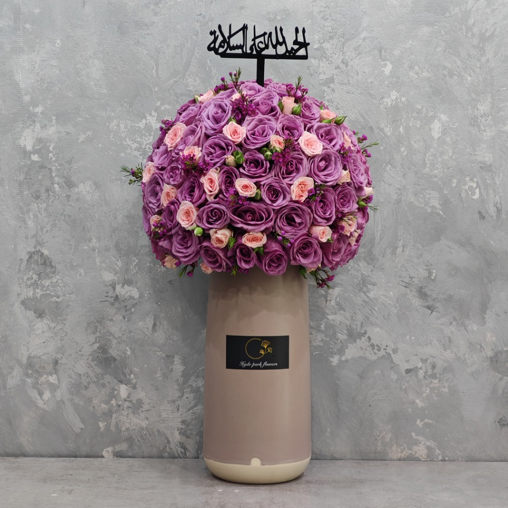 فازة تحتوي علي زهور الجوري.