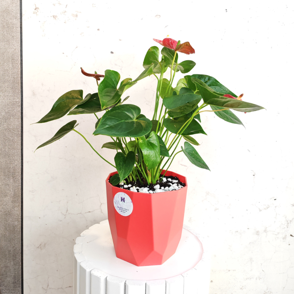 باقة بسيطة وأنيقة تحتوي على نباتات أنثوريوم طبيعية.