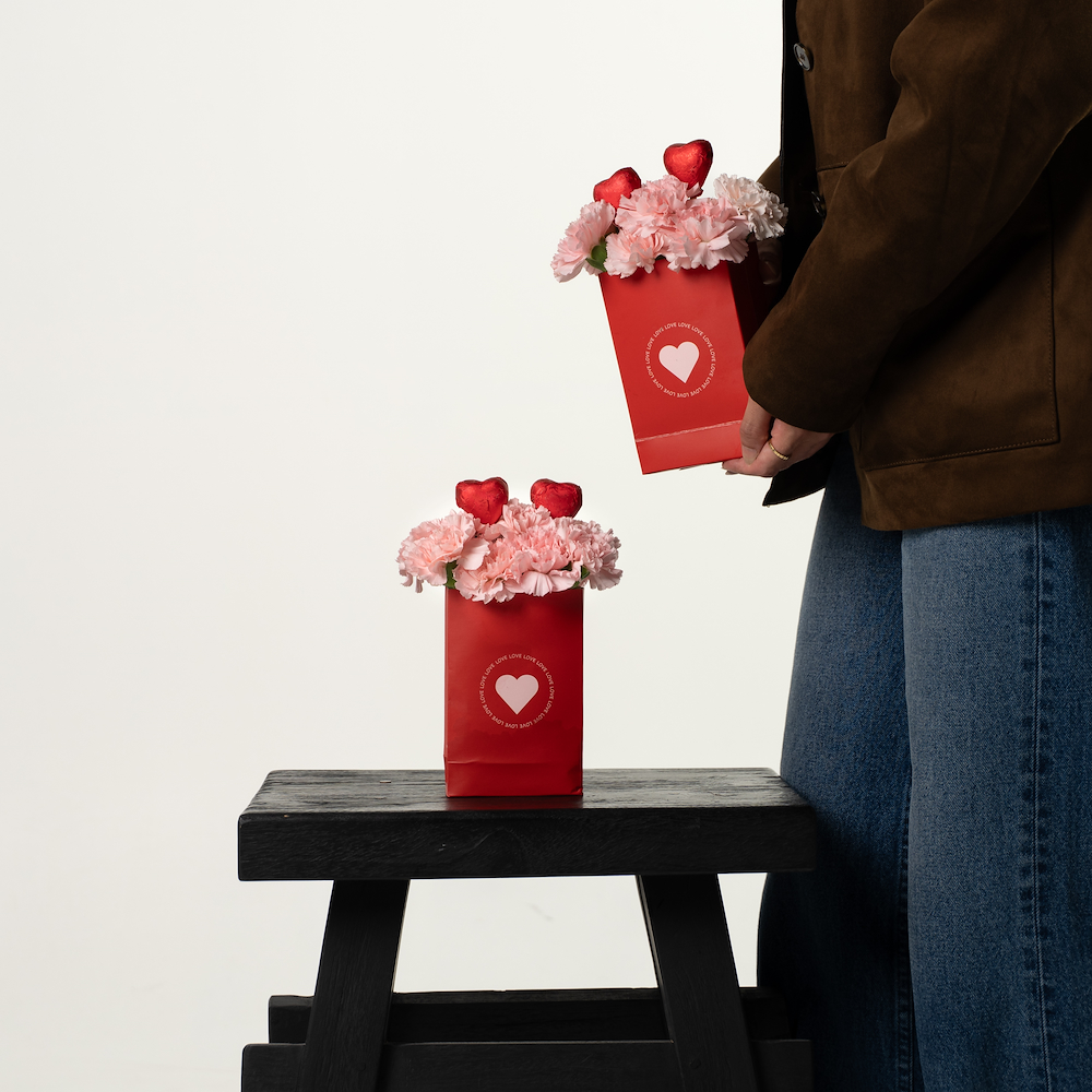 باقة صغية تحتوي على الكارنيشن مع الشوكولاتة البلجيكية.