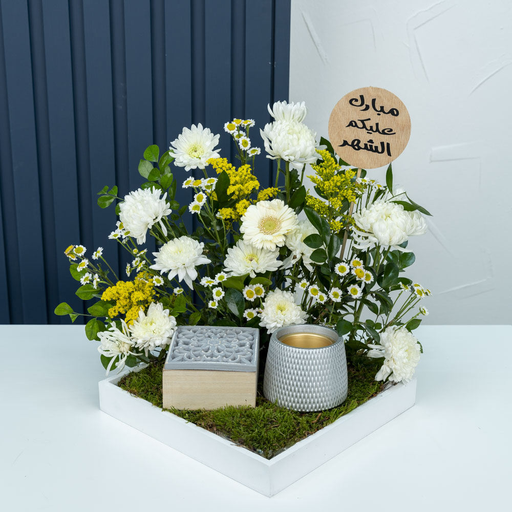 هذه الباقه تحتوي على الكريزانتيمم مع كيكة الشوكولاتة.