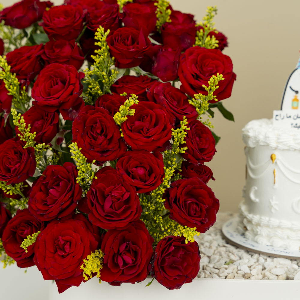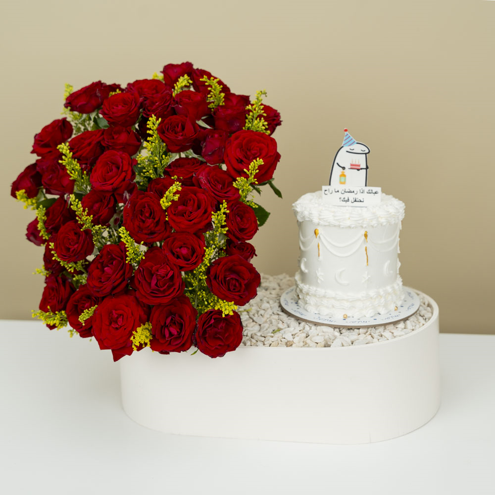هذه الباقه تحتوي على البيبي روز مع كيكة الشوكولاتة.