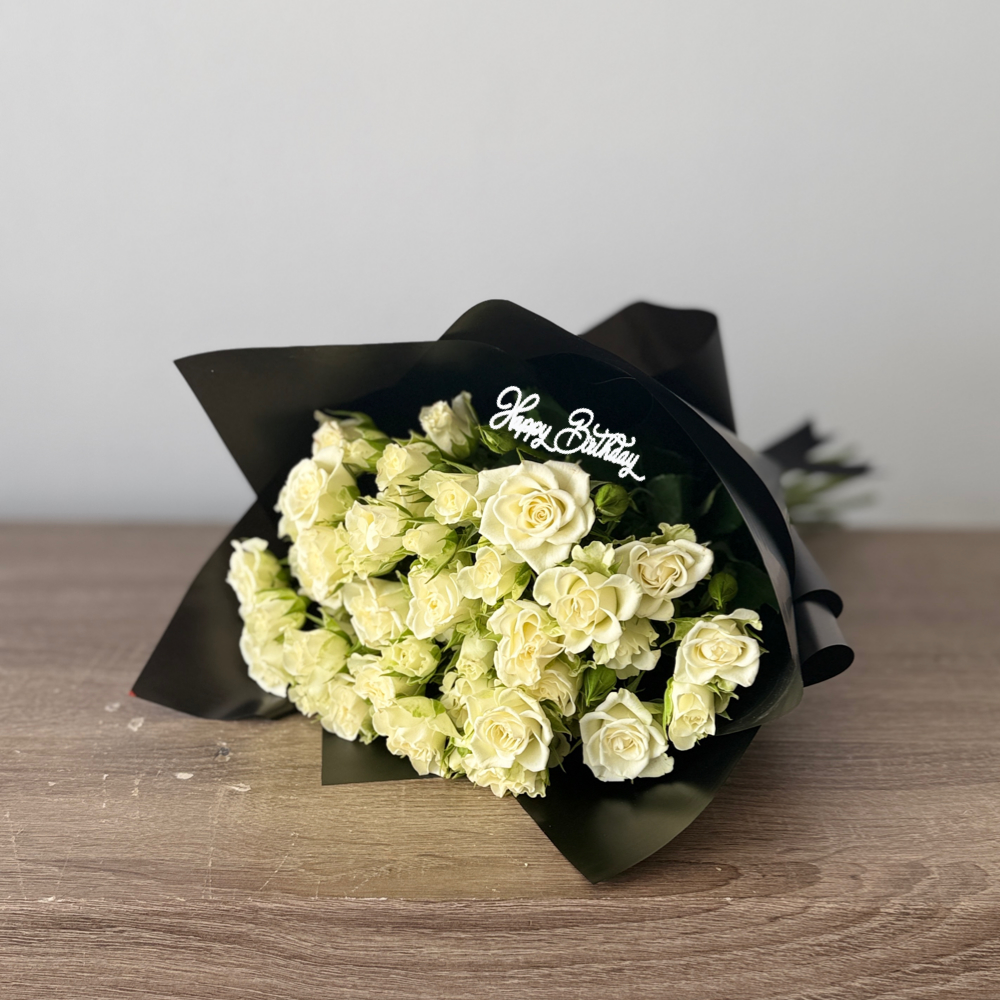 هذه الباقة تحتوي على زهور الليلي، البيبي جوري والجيربيرا.