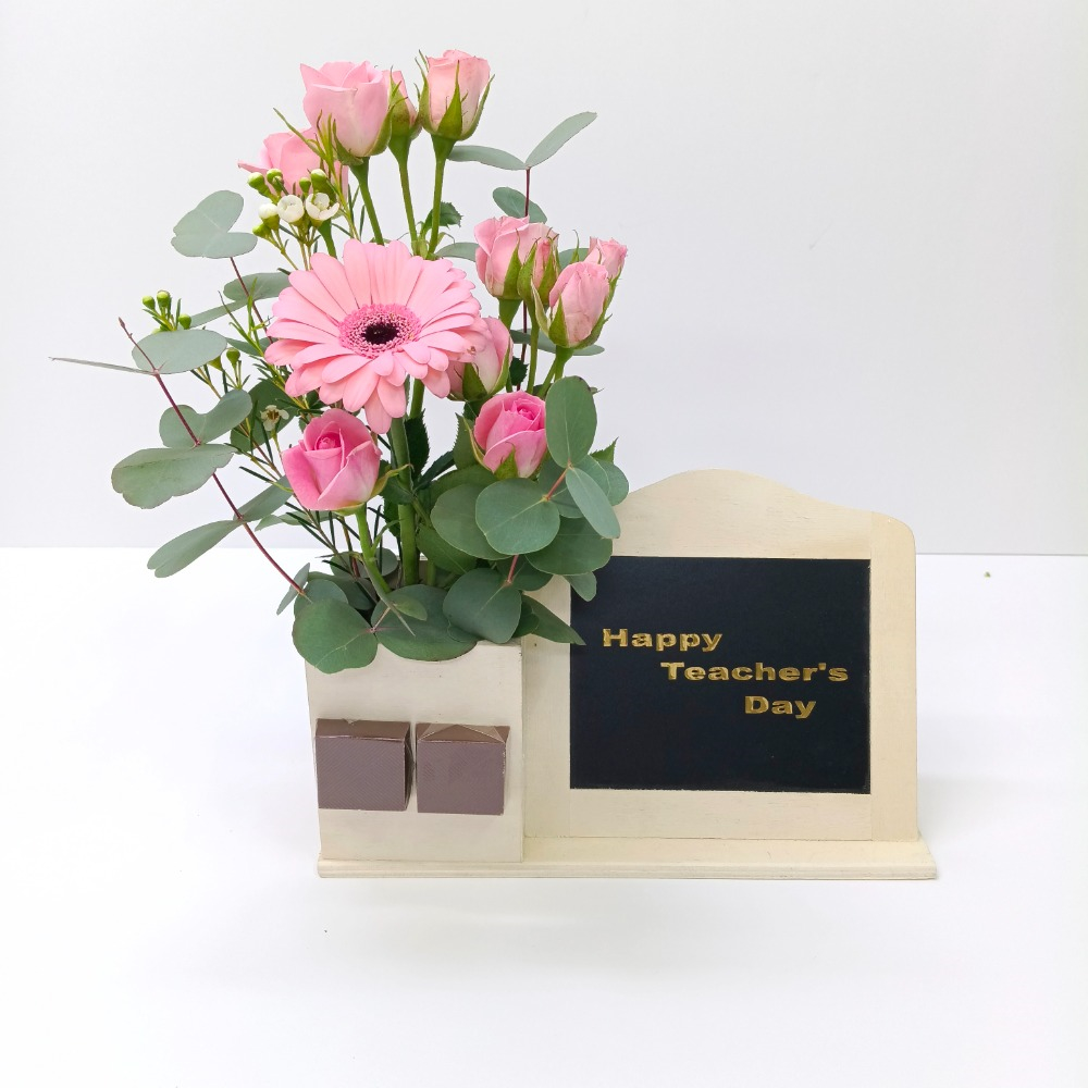 صندوق يحتوي على الجوري، الآنثوريوم، الهايدرنجا والماثيولا.