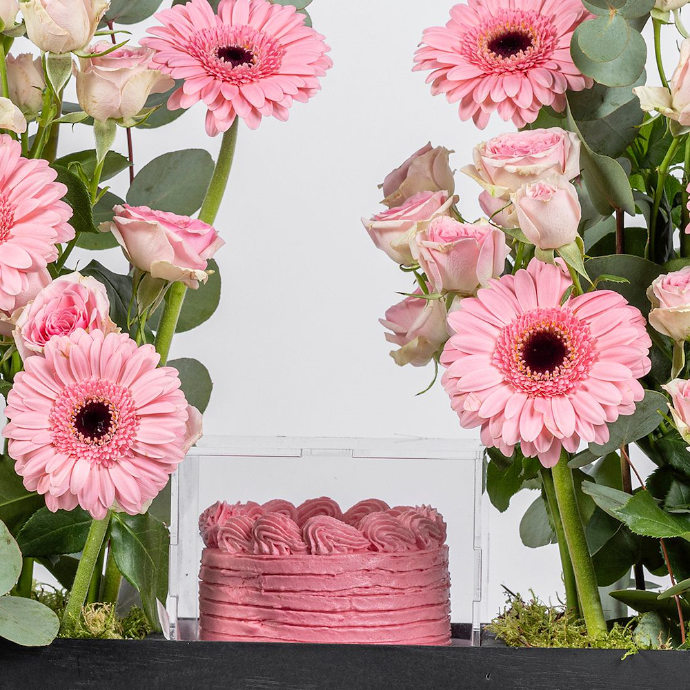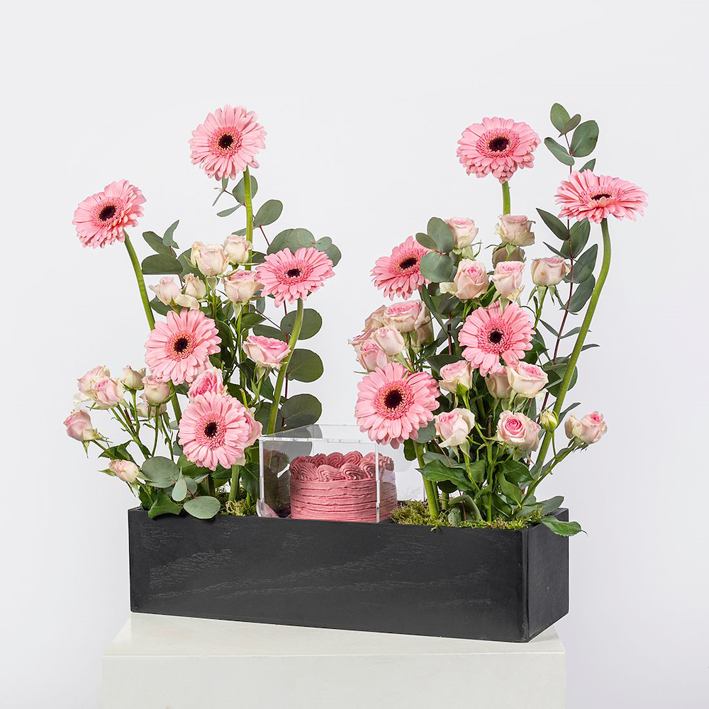 تحتوي هذه الصينية الجميلة على زهور البيبي جوري والجيربيرا الوردية مع كيكة. يمكنكم تخصيص الكتابة على الكيكة باللغة الإنجليزية فقط.