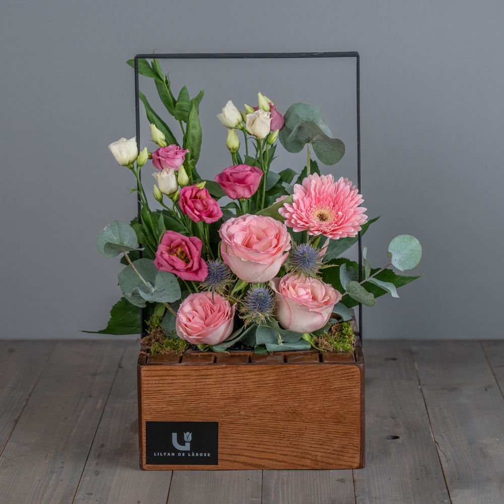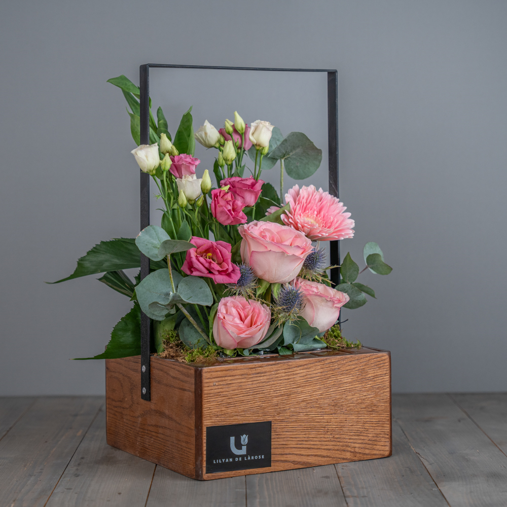 باقة تحتوي على الجوري، الاستوما والجيربيرا مع الشوكولاتة البلجيكية.