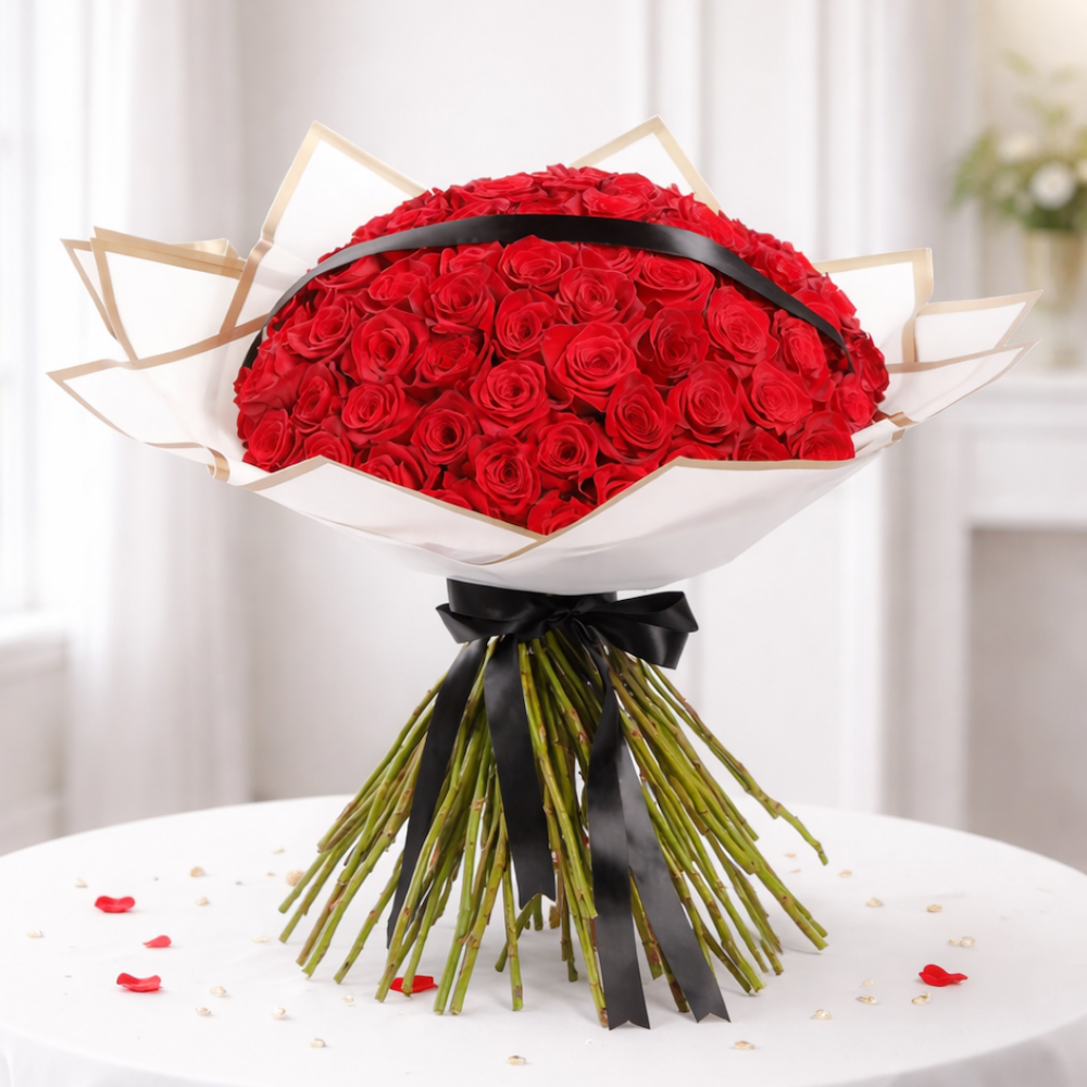 تحتوي السلة الخشبية على بتلات الأوركيد، البيبي جوري وزهور الواكس مع الشوكولاتة البلجيكية.