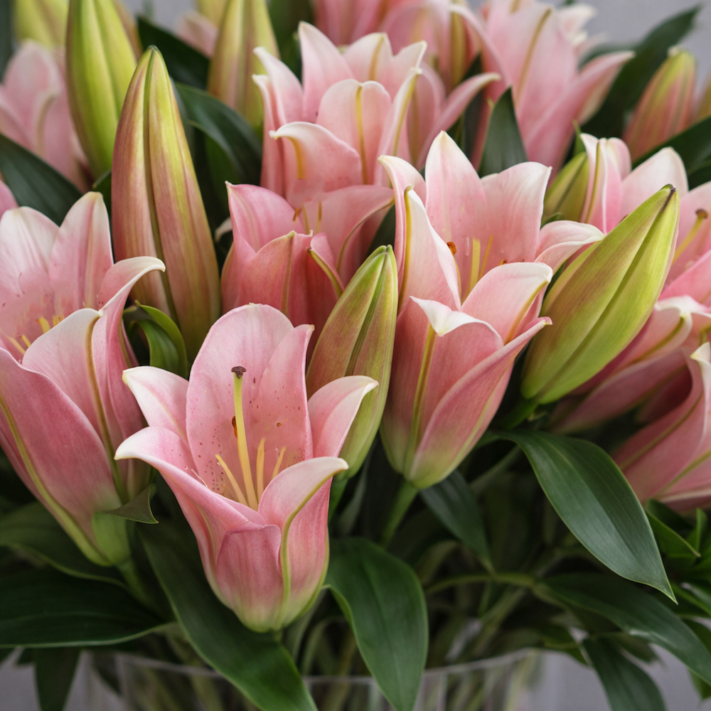 باقة تحتوي على زهور الليلي ذات الرائحة الجذابة، منسقة بشكل أنيق.
