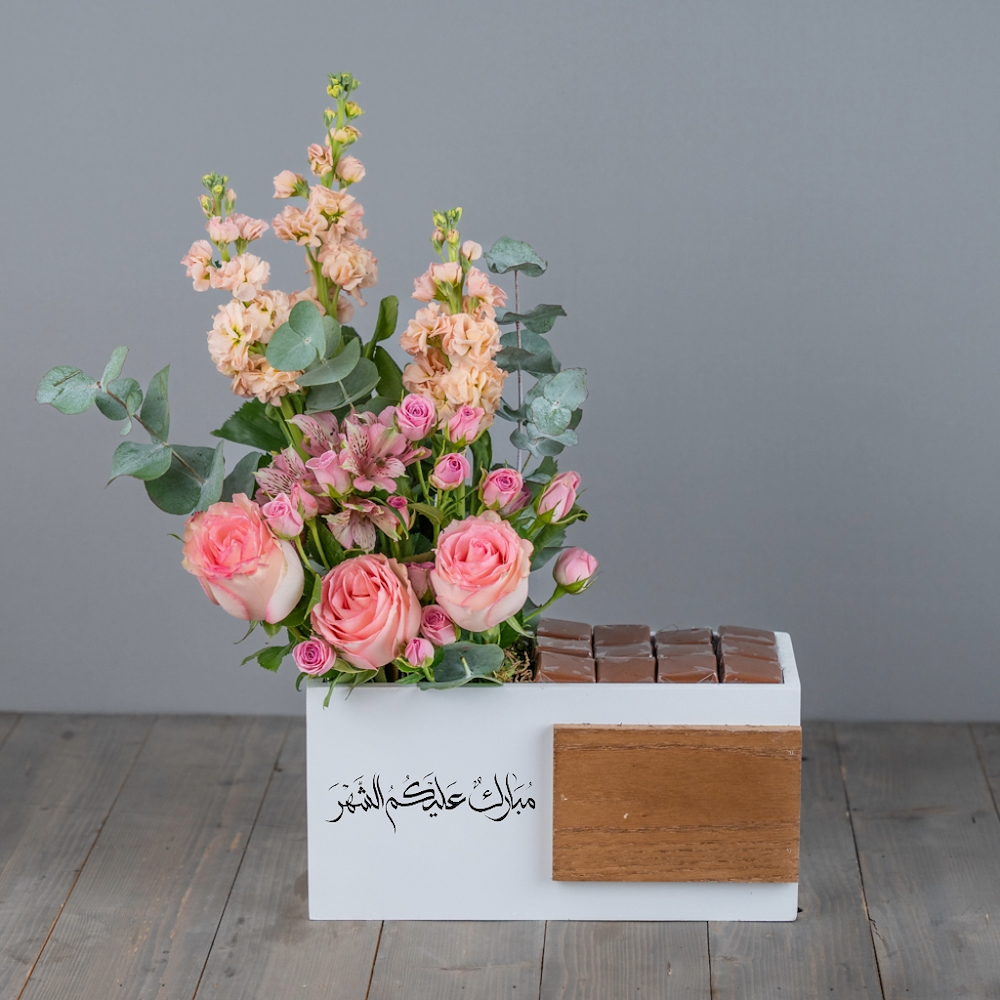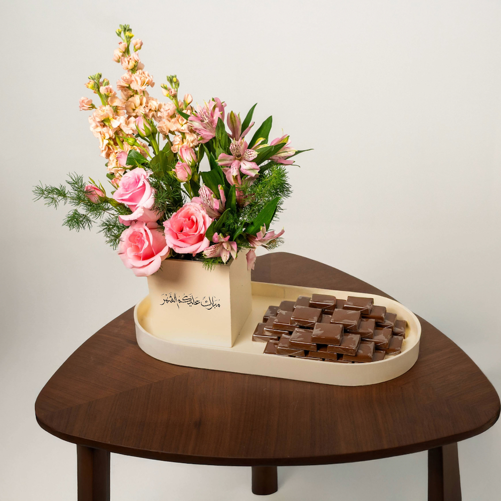 باقة تحتوي على الجوري مع الشوكولاتة البلجيكية.