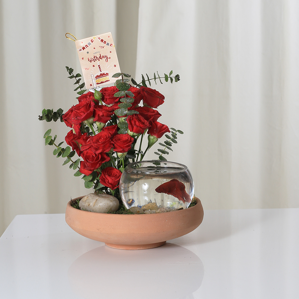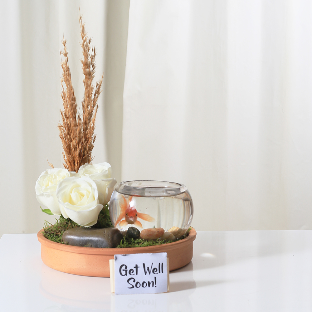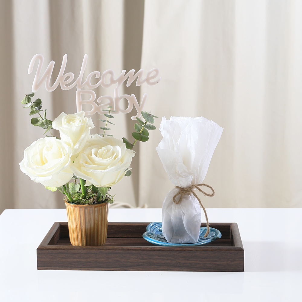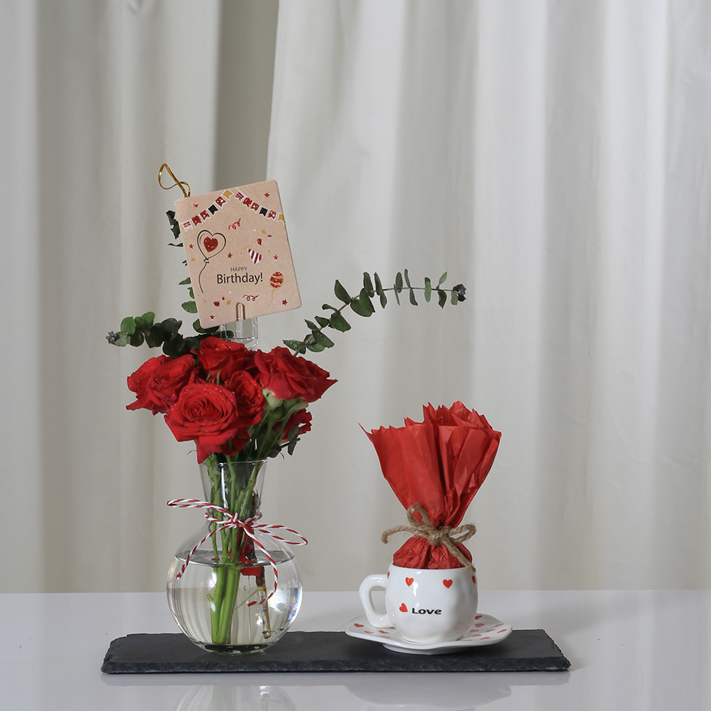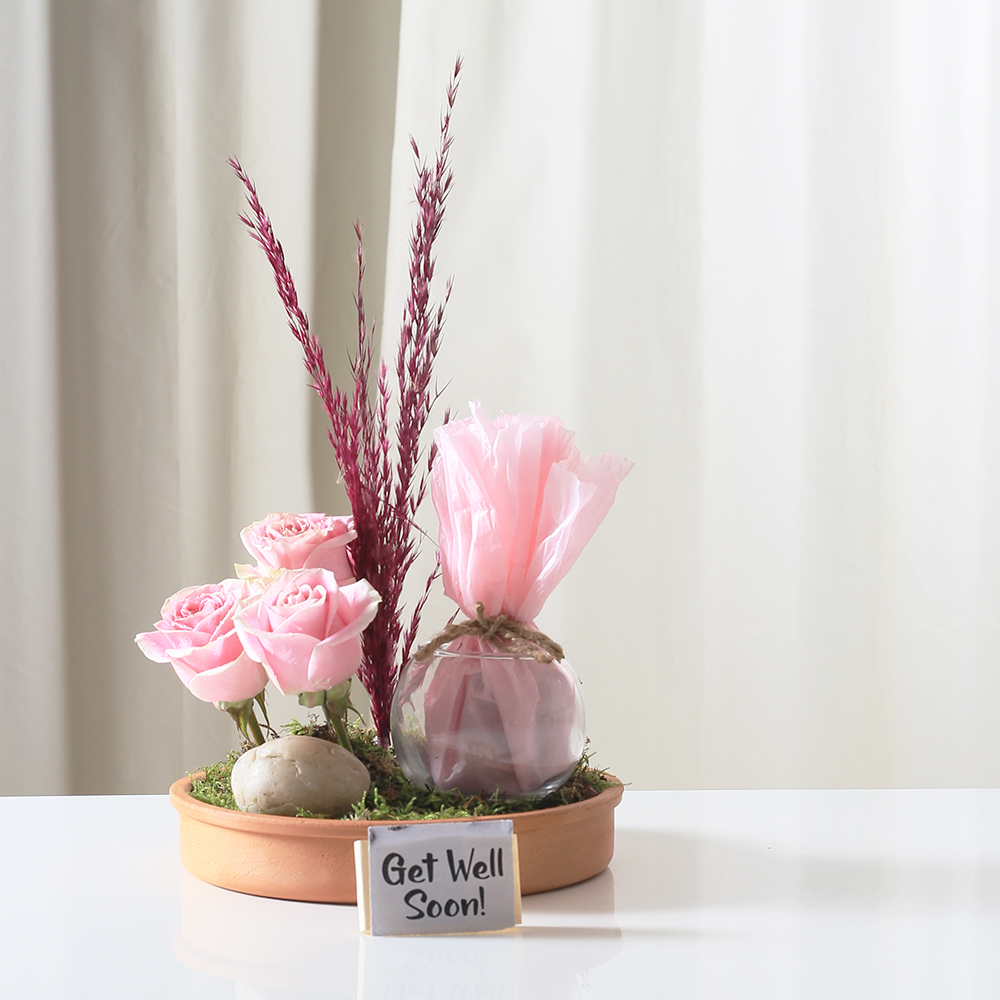 بوكيه يحتوي على جوري بيضاء وشوكولاتة.