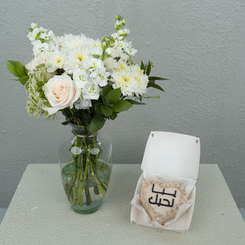 هذه الباقه تحتوي على الجوري والكريزانتيمم مع كيكه الشوكولاتة.