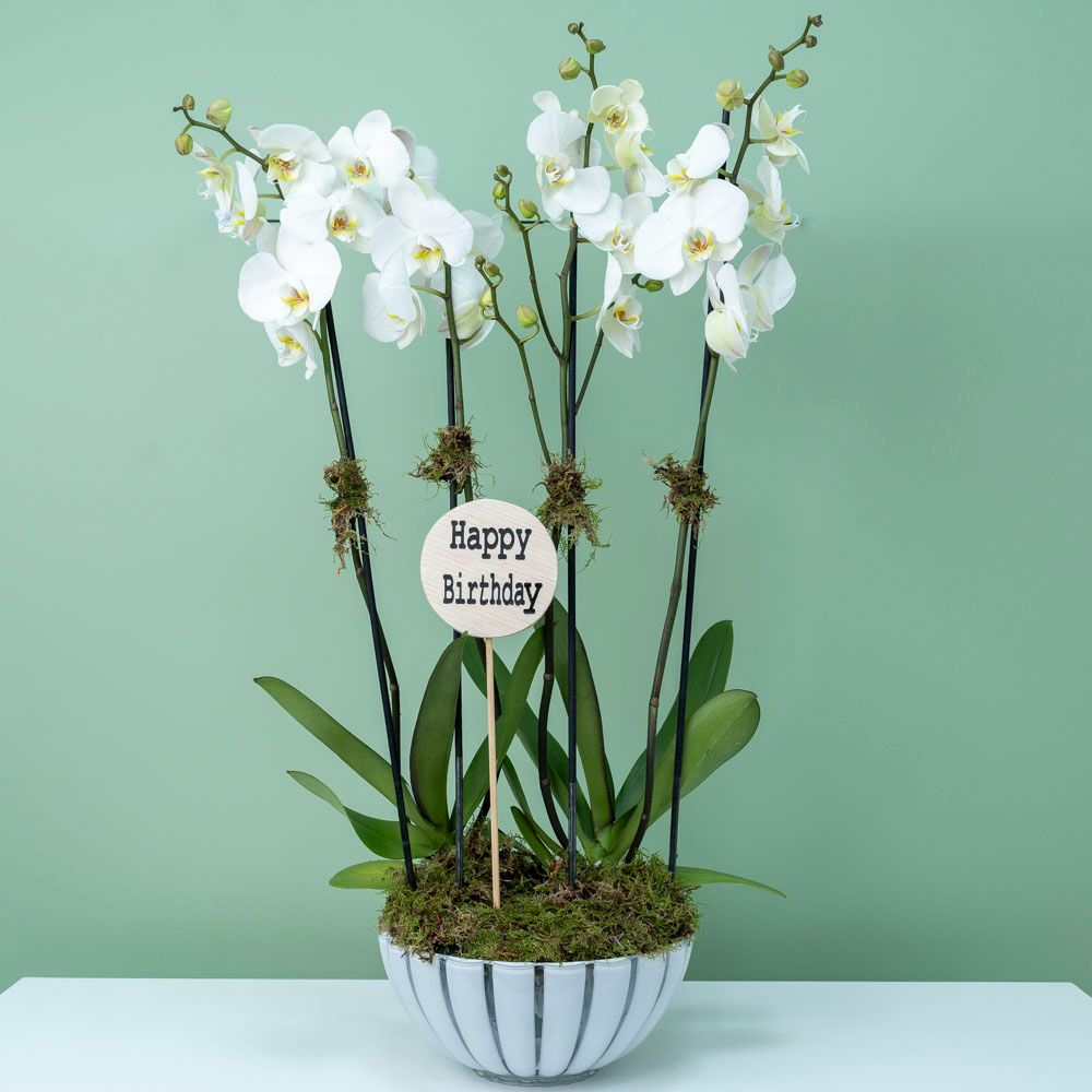 فازة أنيقة مليئة بنباتات الأوركيد الجميلة.