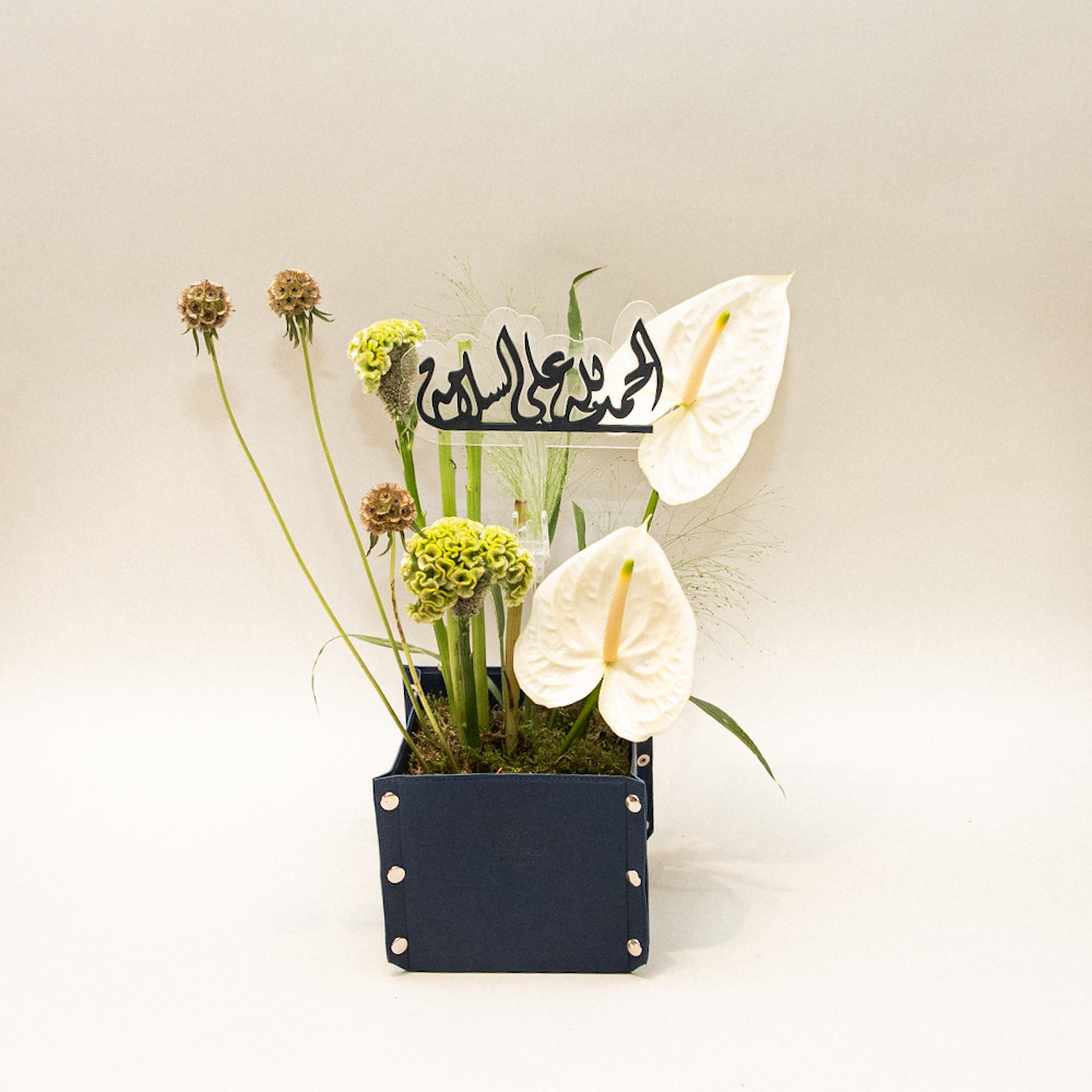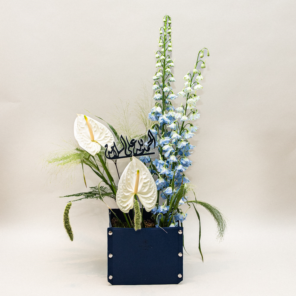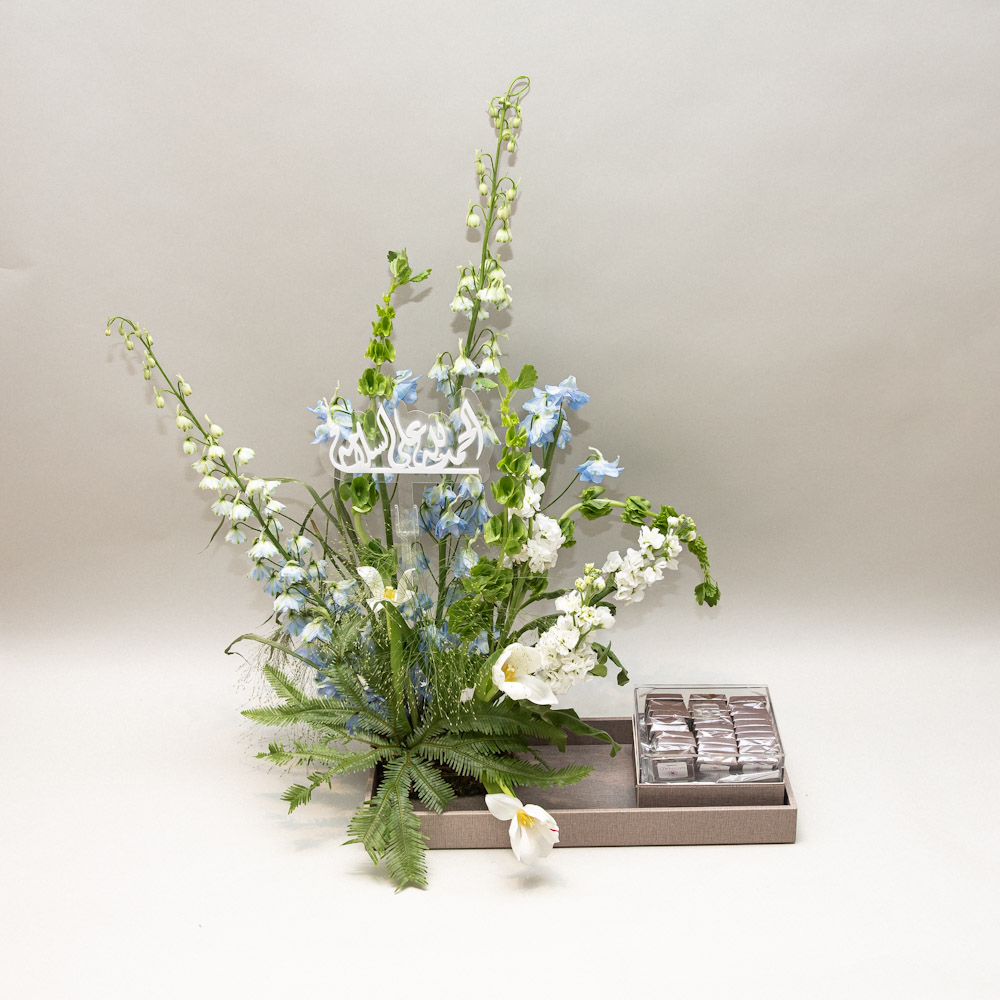 باقة أنيقة مليئة بأزهار الجوري والكريزانتم بلمسة عطرية هادئة ولمسات أنيقة بتصميم ناعم مع عطر.