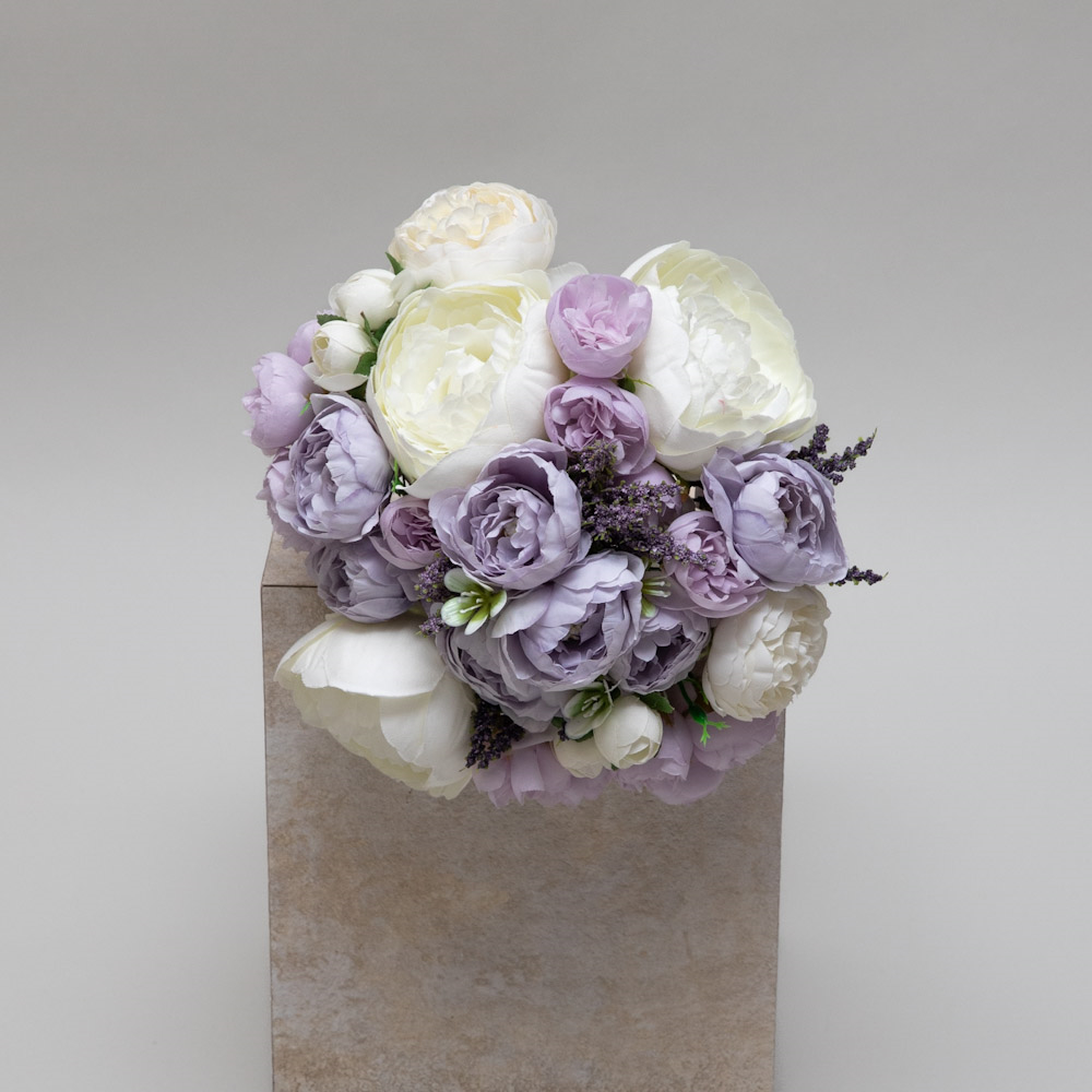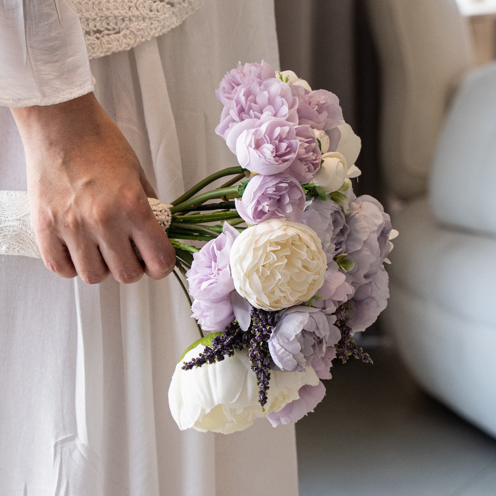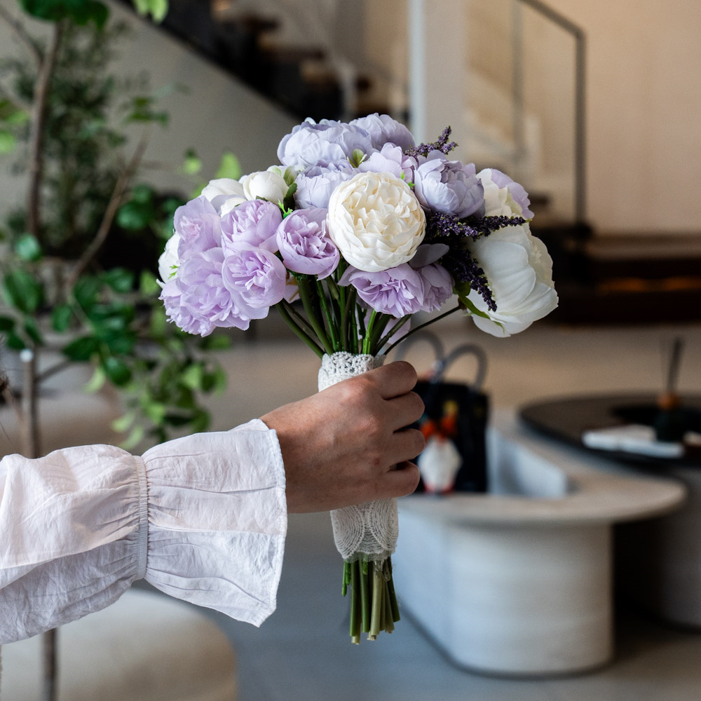 باقة العروس الرومانسية تتميز بأزهار البيوني بدرجات وردية وعاجية ناعمة، بتنسيق انسيابي أنثوي. تعكس رقة وأناقة خالدة.