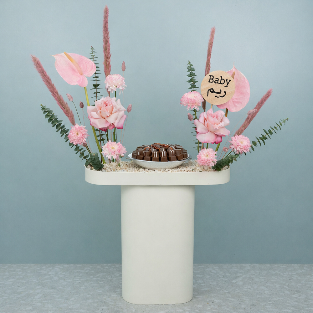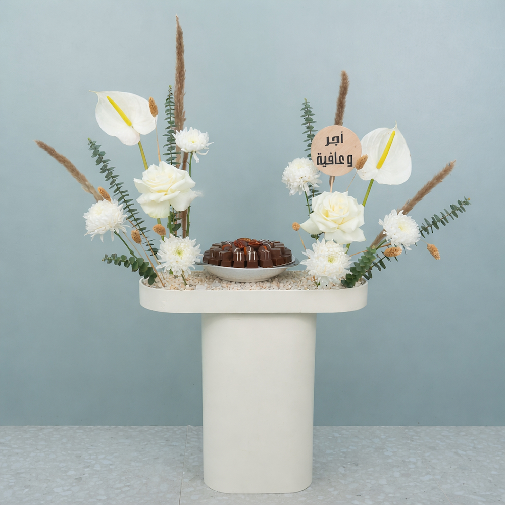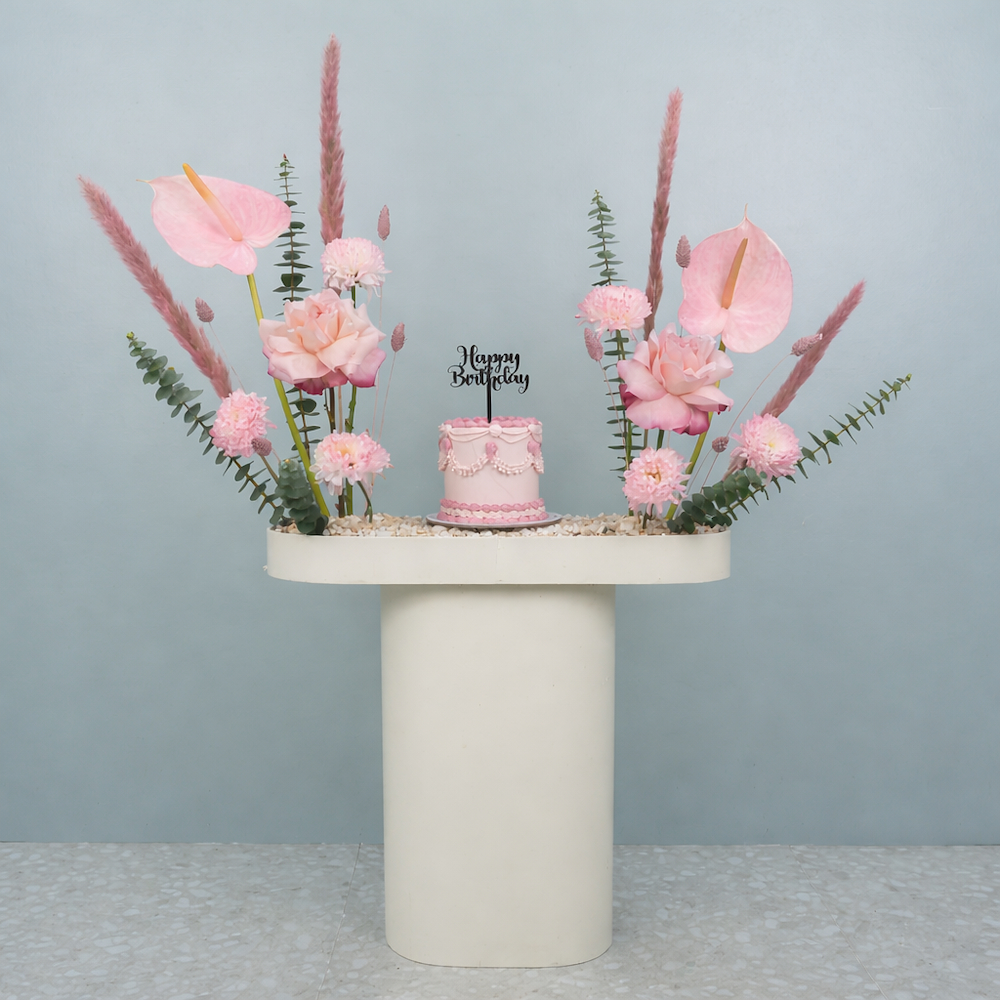 هذه الباقة تحتوي على زهور الجوري والكريز مع كيكة الشوكولاتة.
