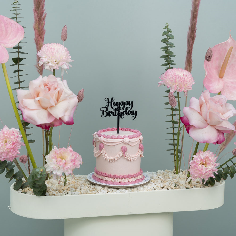 هذه الباقة تحتوي على زهور الجوري والكريز مع كيكة الشوكولاتة.