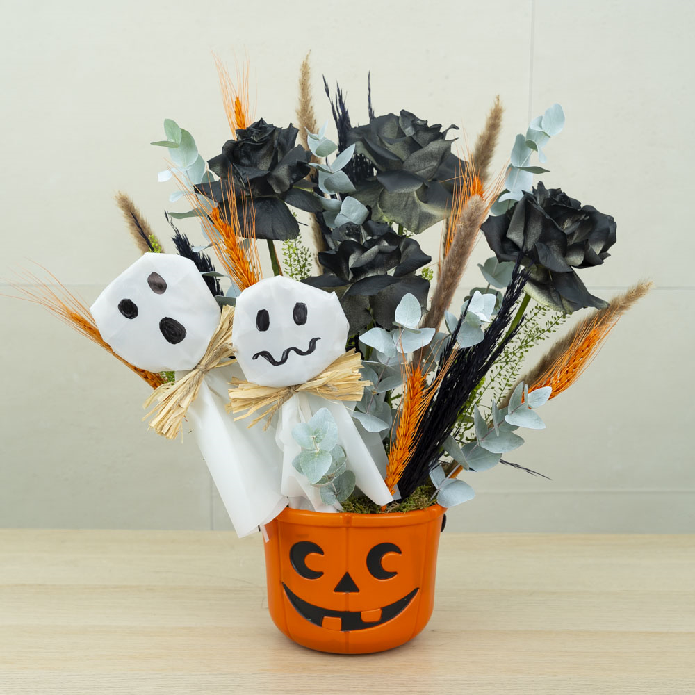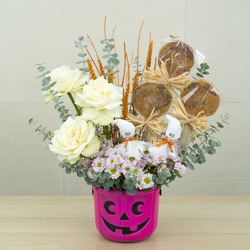 بوكس مليئ بنباتات الأوركيد وأزهار الجوري.
