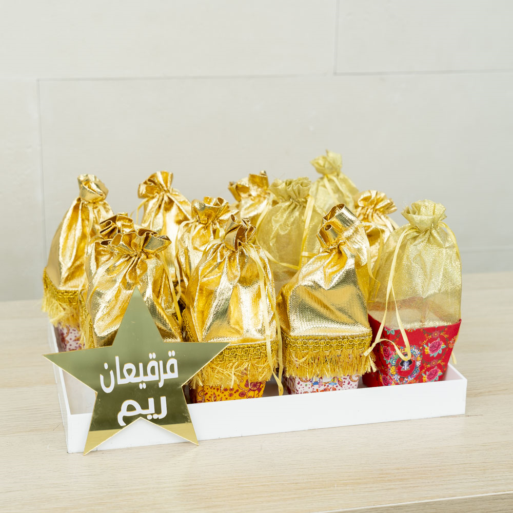 صينية تحتوي على الجوري، الكارنيشن، الماثيولا واليوكالبتوس مع كيكة الشوكولاتة. ملاحظة: يتم تغليف الكيكة بشكل منفصل.