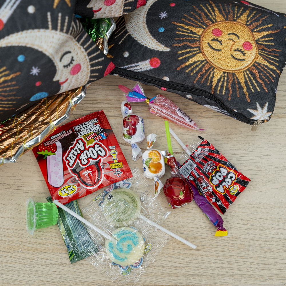 تحتوي الصينية على 12 أكياس من الشوكولاتة الفاخرة المتنوعة.