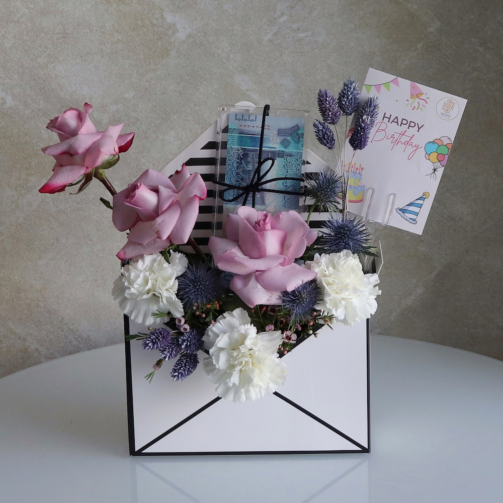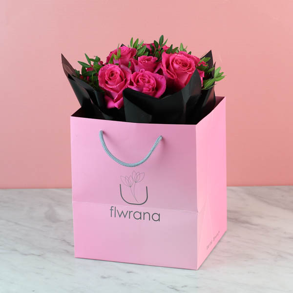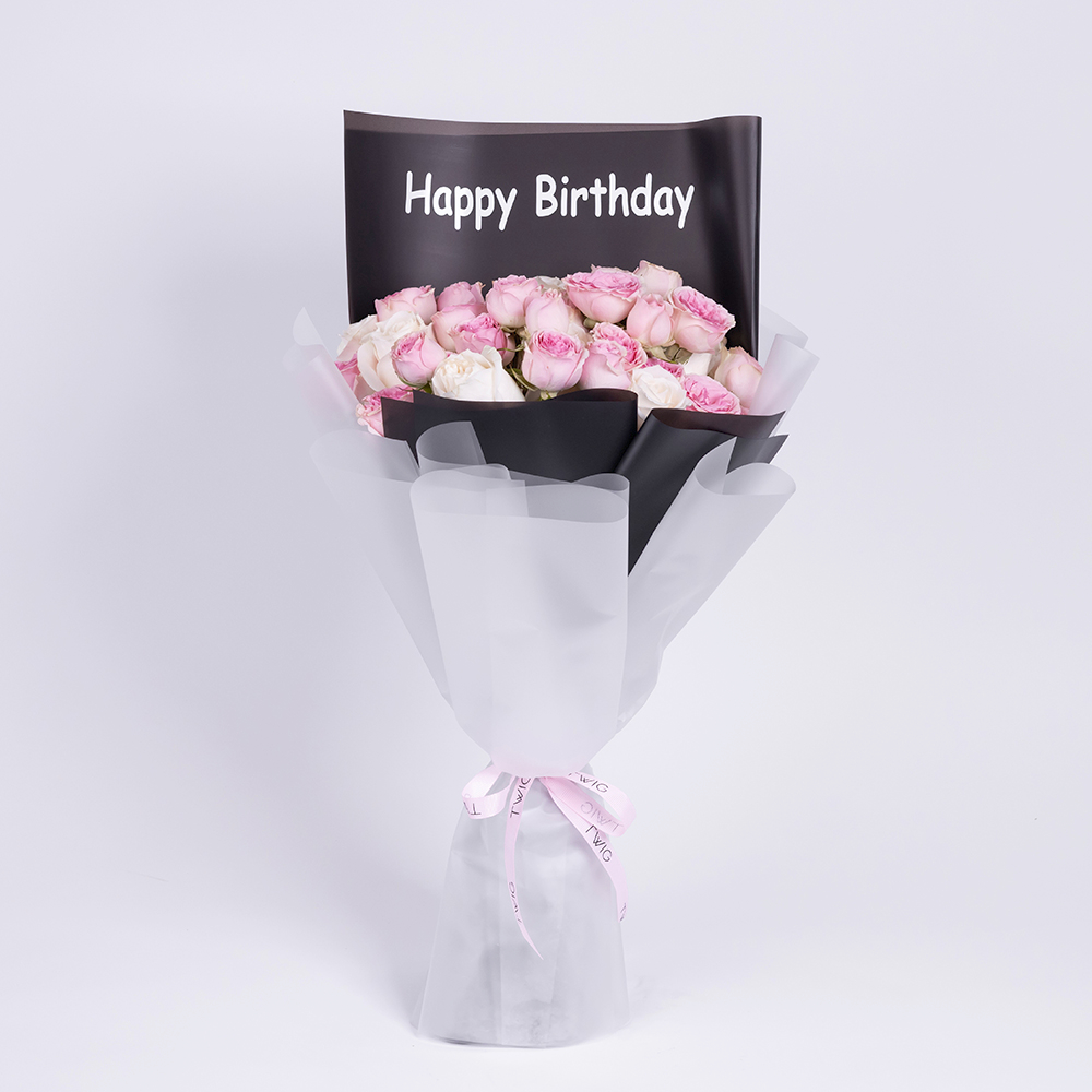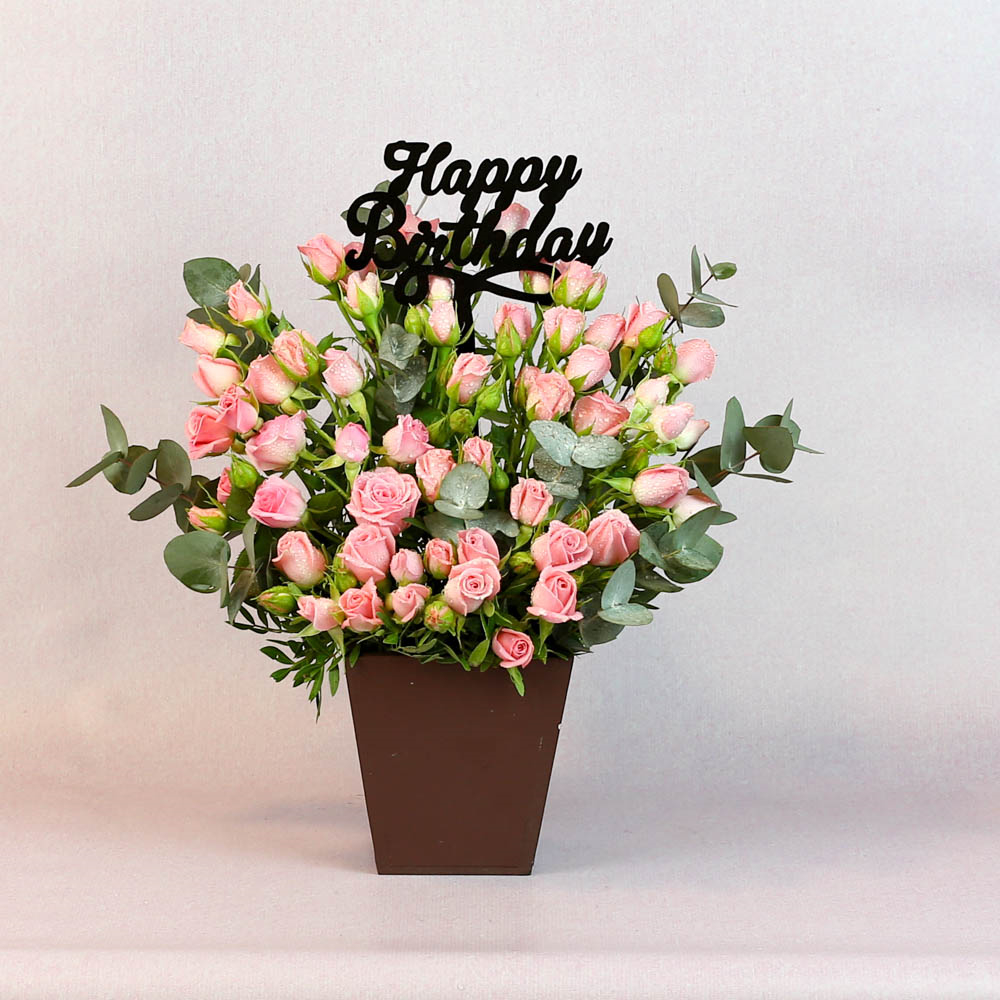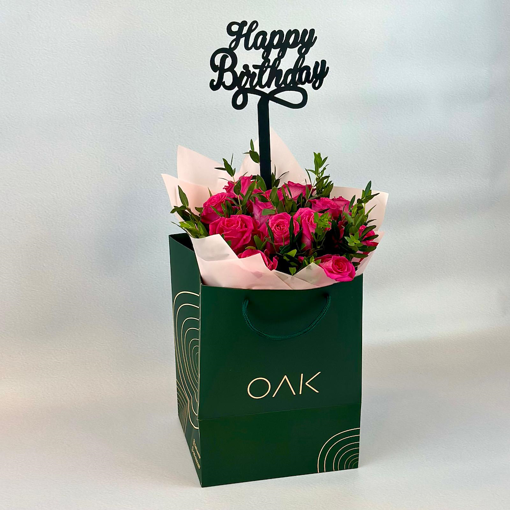 باقة تحتوي على الجوري مع الأوراق الخضراء.