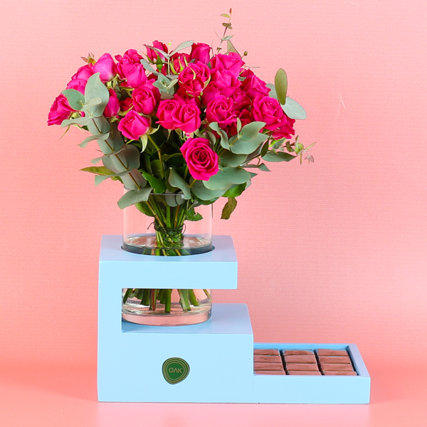 بوكيه يحتوي على الجوري والشوكولاتة.