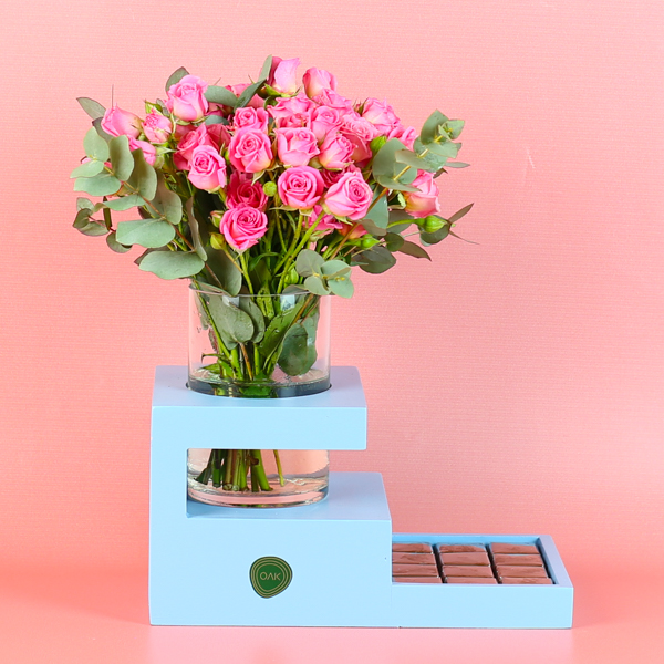 بوكيه يحتوي على الجوري والشوكولاتة.