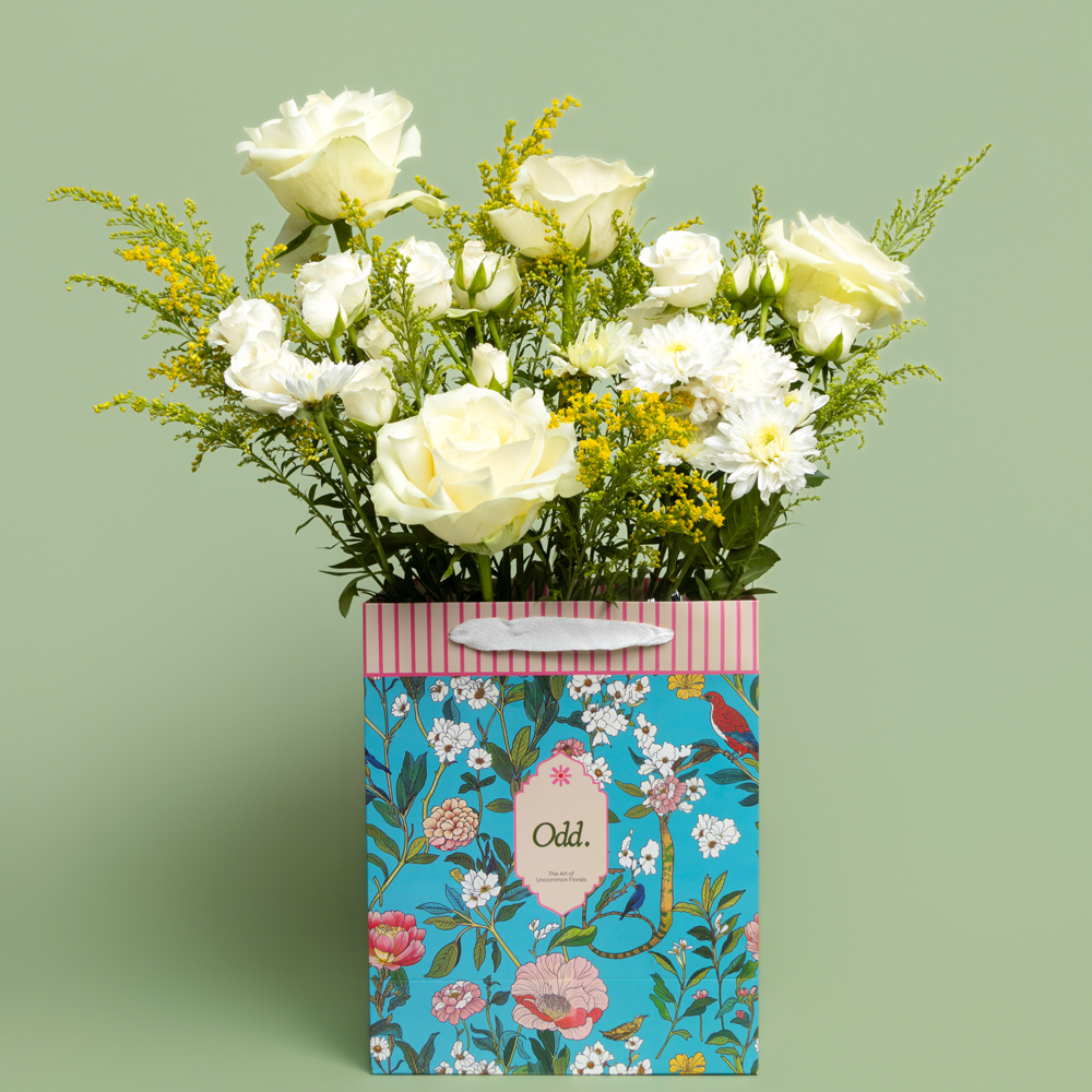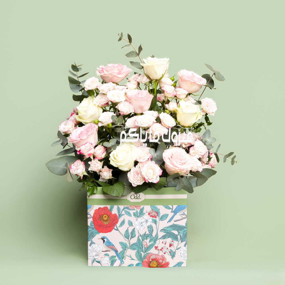 هذا البوكيه يحتوي على زهور الأوركيد الوردية في صندوق بني كبير.