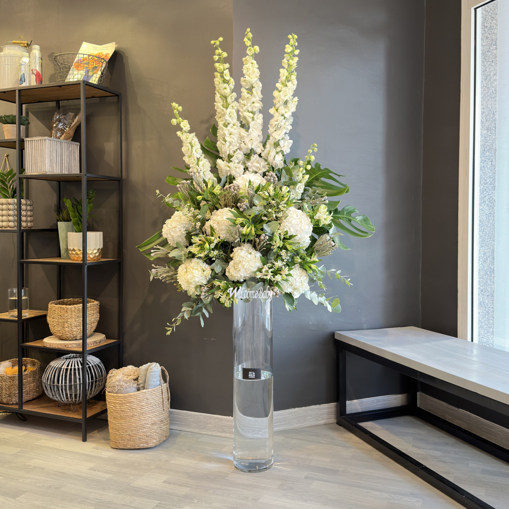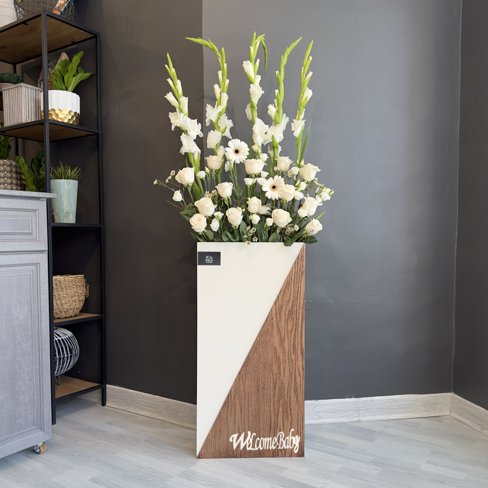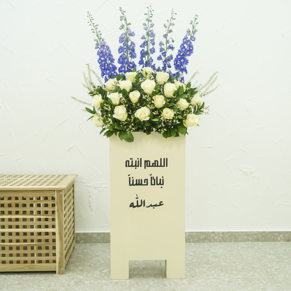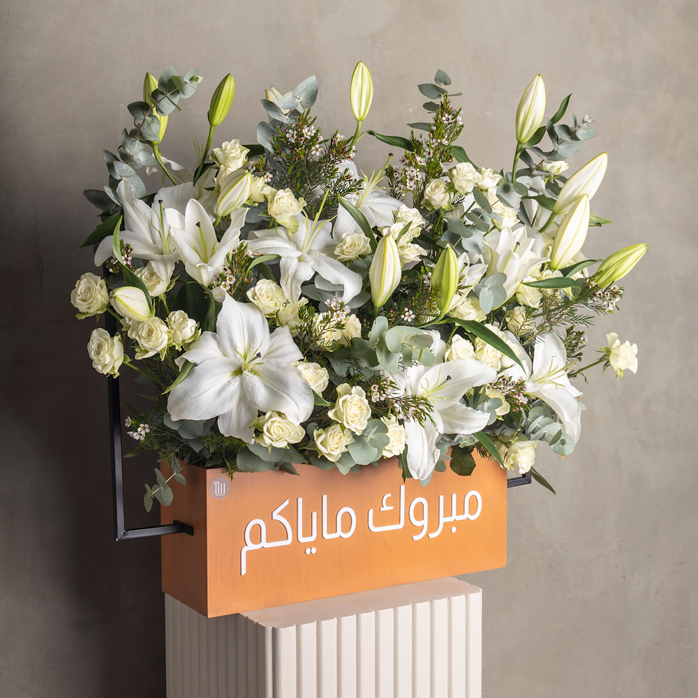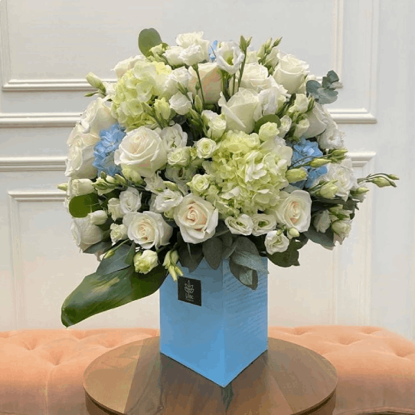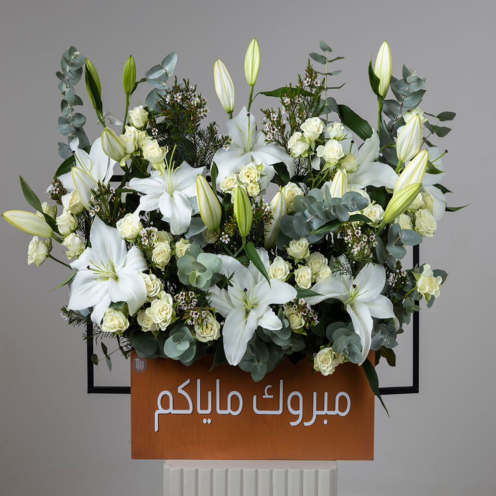 هذه العلبة الخشبية تحتوي على زهور الجوري والكازابلانكا.